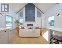 A Modern Coastal Retreat at Southampton LandingThis striking, custom-built home blends coastal charm with contemporary design in one of Saugeen Shores' most desirable communities Southampton Landing. Step inside to soaring vaulted ceilings, oversized windows, and an open-concept main floor drenched in natural light. The designer kitchen is a showstopper! Featuring custom cabinetry, quartz countertops, pot filler, two large islands with seating, and seamless flow into the living area anchored by a sleek linear fireplace. The main floor offers two bedrooms that share a stylish full bath, a convenient powder room, main floor laundry, and a built-in mudroom with custom cabinetry leading to the garage and 4' crawl space for extra storage. The upper-level loft-style primary suite offers a true sanctuary with dramatic architectural windows, warm wood flooring, and a spa-inspired ensuite complete with a soaker tub, walk-in shower, and dual vanity. Every detail has been thoughtfully designed. Outdoors, the steel roof and steel siding provide long-term durability and low maintenance, allowing you to spend more time enjoying life near the lake. A detached garage with covered breezeway adds both style and function, while the manicured landscaping and concrete driveway complete the clean modern aesthetic. Located steps to trails, beaches, and everything Southampton has to offer. This home is a perfect mix of sophistication, comfort, and easy living. (id:46441)