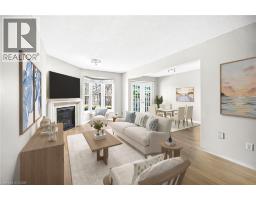ELEGANT 3 BEDROOM 4 BATH TOWNHOME in one of stoney creek's most desirable neighborhoods! Nestled at the end of a quiet cul-de-sac and backing onto parkland. Beautifully finished top to bottom with pride of ownership evident throughout. Bright and spacious home with open concept design. Modern kitchen with Caesarstone countertops, stainless steel appliances including a dual oven/stove.  Glass doors from kitchen lead to deck and private yard looking onto woodland - great space for relaxation and entertaining. Main floor family room with gas fireplace. Primary bedroom suite with ensuite bath. Fully finished lower level with 2nd fireplace, bath and storage. OTHER FEATURES INCLUDE: fridge, stove, dishwasher, washer & dryer, central air, 2 gas fireplaces. Perfectly situated with short stroll to parks, schools, conveniences. Only 5 minutes to QEW for commuters. This move-in ready home offers lifestyle & conveniences! Some photos virtually staged. (id:46441)