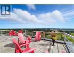 Welcome to The Highlands by the Park; 20 Berkley Road. Nestled atop a hill at the end of a quiet cul-de-sac in historic West Galt, this prestigious condominium offers tranquility, privacy, and sweeping views of nature and the city skyline. Overlooking a majestic woodlot, Victoria Park, and beyond, this building is one of Cambridge's hidden gems. This spacious 2,418 square foot, carpet-free unit offers a rare combination of size, layout, and natural light. With 3 generously sized bedrooms, 2 full bathrooms, and a thoughtfully designed floor plan, it’s ideal for those seeking a blend of comfort and functionality. Step into an impressive foyer with mirrored walls and a large closet before entering the bright eat-in kitchen, complete with ceramic tile, crisp white cabinetry, built-in range top, track lighting and a cozy breakfast nook that looks out over lush greenery. The kitchen opens into a formal dining room with laminate flooring and elegant wall sconces; perfect for entertaining. The adjacent oversized living room features a wood-burning fireplace (sold in as-is condition) and leads to a bright all-season solarium with floor-to-ceiling windows, perfect as a den, office, or creative space. Down the hallway, you’ll find three spacious bedrooms, including a large primary suite with two large windows, an expansive walk-in closet, and a 5-piece ensuite. A second 4-piece guest bath serves the remaining bedrooms. The in-suite laundry closet is conveniently tucked away off the main hallway. Building amenities include a rooftop terrace with panoramic views, ample seating, and barbecue, a party room with full kitchen and lounge area, meeting room, exercise room, and beautifully maintained common spaces. This unit includes one underground parking spot with a tandem storage locker. Don’t miss this rare opportunity to live in a peaceful, elevated community surrounded by nature, just minutes from the charm and culture of West Galt. (id:46441)