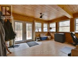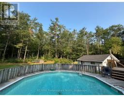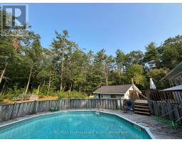 Welcome to this beautiful private home located on a serene, tree-lined property, designed for those who love the charm of Muskoka living with the ease of modern amenities. This custom-built home offers 3+1 bedrooms and 2 bathrooms, providing generous space for family and friends. Step into a bright and airy open-concept layout, where the living room, dining area, and kitchen seamlessly blend together. Sunlight pours in through expansive bay windows, illuminating the hardwood floors that extend throughout the home. A cozy Muskoka room offers the perfect space to unwind and take in the forested backyard, while main-floor laundry adds to the home's convenience. Outdoors, enjoy summer fun in the above-ground pool, or embrace year-round adventure with direct access to nearby snowmobile trails. Start your day with coffee on the front balcony, accessible from the primary bedroom through large double sliding doors and take in the sounds of nature. This home has been thoughtfully updated for move-in-ready comfort, featuring a brand-new furnace (2024), a newly renovated basement bathroom (2024), an updated upstairs bathroom (2024), and an updated pump and pressure tank. Sitting on just under an acre, the private yard offers ample space for outdoor activities, while the detached 2-car garage and storage shed provide plenty of room for vehicles, tools, and recreational gear. This home is located just minutes from HWY 11 and five minutes from downtown Bracebridge, offering the perfect convenience with limited neighbours and backing onto and abundance of forest. (id:46441)