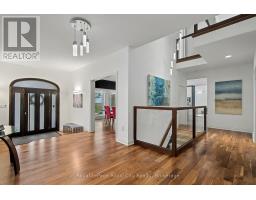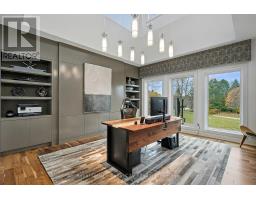 Set high on a hill and surrounded by mature trees and backing onto parkland, this extraordinary residence offers the ultimate in privacy & sophistication. A classic, timeless exterior, perfectly situated in Fox Run Estates, one of the area's most coveted estate communities. Over 7300 sq ft of finished living space, it effortlessly blends elegance, comfort, design, and a touch of pizzazz. Magnificently located within minutes of all amenities as well as major transportation arteries, and yet a peaceful tranquil setting. Step inside and prepare to be impressed. The grand foyer boasting rich walnut flooring is flanked by a handsome home office on one side and an elegant formal dining room on the other - perfect for hosting special occasions. The private primary wing is a true retreat, complete with a newly renovated spa-like ensuite, a custom walk-in closet with Birdseye Maple cabinetry, and a private deck leading to a hot tub - the perfect spot to unwind at day's end. The state-of-the-art Downsview kitchen is a chef's dream, featuring an enormous granite island and abundant workspace for multiple cooks to collaborate in style. The bright breakfast area enjoys scenic countryside views, while the adjacent 2 storey sitting area offers a sunny sanctuary. This wing also provides access to a private front courtyard, a second main-floor powder room, laundry room and 3 car garage, along with convenient access to the rear yard and pool area. At the heart of the home, the family room is defined by a granite faced gas fireplace. Custom cabinetry houses an entertainment centre and French doors lead to an expansive rear deck overlooking the pool - a seamless blend of indoor and outdoor living. Upstairs, 2 bedrooms share a full Jack & Jill bath Third bedroom features its own private ensuite. Prepare to be dazzled once again on the lower level, where a recent renovation has transformed the space into an entertainer's dream. (id:46441)