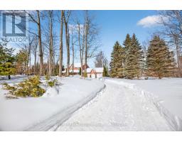 Welcome to your own private retreat on 2.81 beautifully landscaped acres in the prestigious Simcoe Estates of Oro-Medonte. Nestled against a tranquil forest backdrop, this immaculate executive home offers 4+1 bedrooms and a professionally finished walkout basement-perfect for extended family or in-law living.Pride of ownership shines throughout. The property features award-winning landscaping, mature trees, and vibrant gardens that create a truly breathtaking setting. Tucked away on a quiet private court in one of the area's most desirable neighbourhoods, this home offers exceptional privacy and a peaceful, natural environment.Car enthusiasts and hobbyists will love the oversized 3-car garage, spanning more than 800 sq. ft. and accommodating up to four vehicles with ease. The expansive paved driveway provides plenty of additional parking for guests. Recent exterior upgrades-including newer Timberline high-definition shingles, eavestroughs with leaf guards, and enhanced exterior lighting-add both beauty and long-term confidence.Inside, the home is finished with quality in mind. A grand traditional Oak staircase, granite countertops, upgraded baseboards, and vintage oak hardwood flooring elevate the living spaces. Major mechanical updates-such as a two-stage high-efficiency furnace, ultraviolet water filtration, two new holding tanks, and fibre-optic internet-ensure modern comfort and reliability.The charming covered wraparound porch is a standout feature, offering a warm welcome and the perfect spot to unwind while enjoying the lush gardens and surrounding nature.Ideally located close to skiing, golfing, fishing, shopping, restaurants, Royal Victoria Hospital, and the amenities of Barrie, this property blends luxury living with everyday convenience.A quick closing is available-your dream lifestyle is ready when you are. (id:46441)