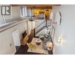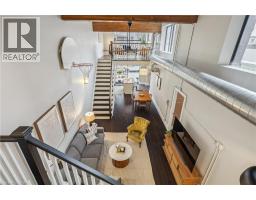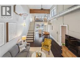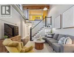 Spanning over 1,600 square feet across two levels with soaring 17-foot ceilings, this bright 3-bedroom, 2-bathroom loft offers a rare combination of space, character, and modern comfort. Large windows fill the home with natural light, while exposed brick, original wood beams, and terrace entry steps highlight its historic charm. The open-concept living and dining area features engineered hardwood floors, granite countertops, stylish fixtures, and stainless steel appliances including a dishwasher. A large kitchen island with breakfast bar seating makes the space ideal for everyday living and entertaining. Two mezzanine areas provide flexible use for a bedroom and home office or den. The spacious primary suite includes a 5-piece ensuite, and the thoughtful layout also offers a third bedroom, second full bath, foyer, and in-suite laundry. A 9-foot sliding door leads to a private 180-square-foot terrace with direct access to your dedicated one parking spot. Heat and Water are included. Hydro is extra. Situated in Hamilton’s desirable Stinson neighbourhood, close to downtown, transit, trails, and amenities, this professionally managed building offers secure entry and a strong sense of community. (id:46441)