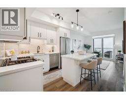 $538.12 MonthlyWelcome to The Gallery, the epitome of luxury condo living in the heart of downtown Burlington. This stunning 1-bed + den, 1-bath suite provides 649 sq ft of bright, thoughtfully designed space with floor-to-ceiling windows showcasing breathtaking, panoramic views of Lake Ontario. The sleek, modern kitchen features a gas stove, large island, quartz countertops, stainless steel appliances & a striking new backsplash, while wide-plank flooring, fresh paint, stylish new lighting & custom blinds elevate the space. The versatile den is ideal for a home office or creative studio. Step onto the oversized 160 sq ft covered balcony with a built-in gas line for BBQs & soak in spectacular south-facing lake views year-round. Residents enjoy unmatched resort-style amenities: indoor pool, state-of-the-art fitness & yoga studios, party & games rooms, rooftop terrace with BBQs & firepit, 24-hr concierge & luxurious guest suites—all with acclaimed Bardo Restaurant conveniently located on the main floor. Walk to Spencer Smith Park, the waterfront, shops, restaurants & cafés, with quick access to QEW, 403 & 407 for effortless commuting. (id:46441)