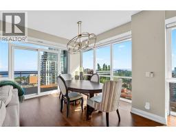 Searching for the perfect lakeview condo in downtown Burlington? Your search is over! Welcome to one of the best residences The Berkeley has to offer! This remarkable 2-bedroom + den, 3-bath suite offers nearly 1,600 sq. ft. of luxury living 15 storeys above the city, with no balcony above you for clear sky views. Enjoy sunrises, sunsets, and boat watching from your massive 270 square foot south-facing wrap around balcony (decking 2021). Inside, floor-to-ceiling windows frame panoramic views of the lake and bay from every room. The spacious primary retreat boasts a walk-in closet and a spa-like ensuite with double sinks, an enormous shower, and a separate tub. The second bedroom is generous in size with its own full bath nearby, while the versatile den is ideal as a 3rd bedroom or private office. Recent upgrades include custom hardwood floors (2024), granite countertops & backsplash (2022), custom office cabinetry (2022), and custom closets (2018). This unit includes 2 parking spots-with room for a motorbike - plus a storage locker. The Berkeley's upscale amenities include a 24-hour concierge, professionally-equipped gym, elegant party room with adjacent billiards room, two guest suites, and a spectacular 3,000 sq. ft. rooftop terrace with lounge spaces, BBQs, and cozy firepits - all with breathtaking views. This exclusive boutique condo is just 3 blocks from the waterfront pier and steps to Burlington's best restaurants, shops, and cafés. Experience luxury, comfort, and convenience in the heart of the city. Don't miss the amazing video tour!! (id:46441)
