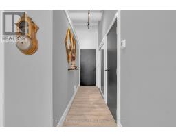 One-of-a-Kind Loft in the Heart of Downtown Kitchener. Welcome to Unit 205 at The Lofts at 276, a stunning, modern, 1-bedroom, 2-bathroom suite that seamlessly blends industrial charm with luxurious finishes. This exceptional, one-of-a-kind space, offers soaring 12-foot ceilings, floor-to-ceiling windows, and garden doors that flood the open-concept living and dining area with natural light. Every detail has been thoughtfully curated, from the wide plank vinyl flooring to the custom design elements throughout. The gourmet kitchen is a chefs dream, featuring rich dark wood cabinetry, veined quartz countertops and backsplash, an oversized island with breakfast bar, custom wine rack, statement lighting and an eye-catching feature wall with built-in buffet. The expansive living area is perfect for both entertaining and relaxing, anchored by a custom fireplace surround with integrated dry bar, wine fridge, and complemented by a warm brick accent wall that adds character and texture. Elegant garden doors open to a Juliette balcony, adding a touch of European charm. The dining space comfortably accommodates family gatherings, offering the perfect setting for special occasions.The main bathroom offers a stylish vanity with a stone vessel sink and a tub with textured tile surround. Additional features include in-suite laundry, underground parking, and an oversized storage locker located just steps from your vehicle. Retreat to the primary suite through double doors to find a wood accent wall, sliding closet barn doors, a custom closet organizer, and a private ensuite. The spa-inspired bathroom includes a walk-in shower with striking black-framed glass doors, wood-look tile, and a generous niche with accent details. Set in a beautifully converted loft building with modern lobby, this home places you in the heart of vibrant Downtown Kitchener just steps from cafés, restaurants, transit, schools, entertainment, and Victoria Park. Urban luxury and everyday convenience await. (id:46441)