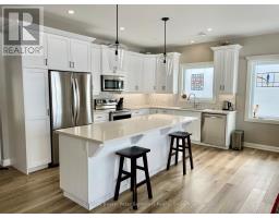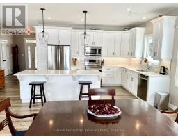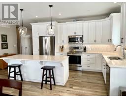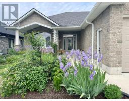 A perfect 1800ft bungalow, ideal for downsizing or as your starter home in the beautiful Westwood Estates. The gleaming white kitchen with manufactured stone countertops is well designed with plenty of storage and counter space. The open concept design invites plenty of family interaction and makes it easy to enjoy company while someone's sharing the cooking duties. The dining room opens out into a covered patio, extending your living space in the summer months. (Napoleon Gas BBQ is included!) Two 3-piece baths: one with a step-in shower, the other with a deep soaking tub. Three bedrooms, to accommodate a growing family, or use them as home offices + private den. Primary bedroom is a generous size and looks over a lovely fully fenced, landscaped backyard. The spacious, attached double garage holds 2 full sized cars. There's plenty of storage space in the garage attic which is accessed by a pull-down step ladder. A natural-gas-generator completes the useful amenities for Bruce County winters! Over $12, 000 worth of fencing and approx $7000 generator included. Carpet-free home with vinyl planking floorboards that are easy to maintain and resilient to all traffic. Enjoy the serenity of small town living in a beautiful home, in a quiet and inviting neighbourhood.(39932696) (id:46441)