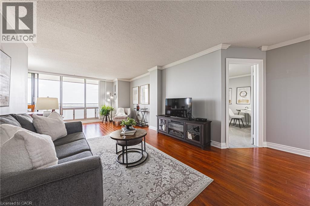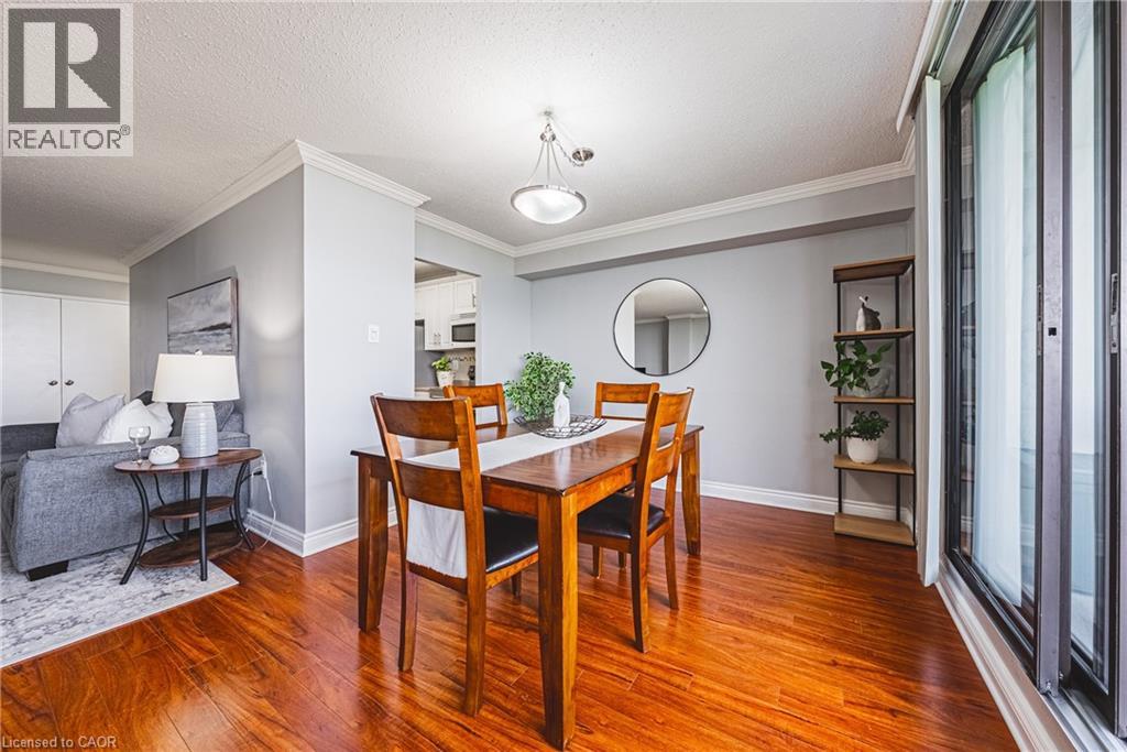 Bright and Beautiful 3-Bedroom Corner Unit with Breathtaking Views Welcome home to this immaculate, thoughtfully designed 3-bedroom corner condo—where stunning views melt away the stress of the day. This spacious unit features engineered hardwood floors throughout the living room, dining area, and hallway, complemented by elegant crown moulding for a refined touch. The well-appointed kitchen includes a brand-new stove, a 2 to 3-year-old dishwasher and refrigerator, and intelligently designed cabinetry with a broom closet, pot drawers, and pantry—all blending seamlessly for both style and function. The generous primary bedroom offers a walk-in closet and a 4-piece ensuite bathroom, complete with more of those out-of-this-world views. The second bedroom and third bedroom (or office) are both well-sized, providing flexibility for your lifestyle. For added convenience, enjoy in-suite laundry and ample storage space. Located just a short walk from shopping, public transit, places of worship, and parks, this condo offers superb access to everything you need. Major highways are also within easy reach, ensuring effortless connectivity to other destinations. As part of a vibrant community within the building, you’ll enjoy a sense of belonging and camaraderie. The condo fee covers all utilities, including heat, hydro, central air conditioning, water, Bell Fibe TV, 60% of the internet, as well as exterior maintenance, common elements, building insurance, parking, and guest parking. Experience a lifestyle of unmatched comfort and convenience—welcome home! (id:46441)