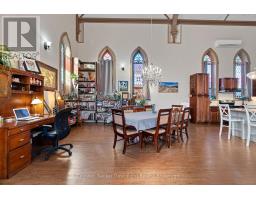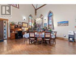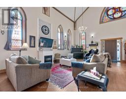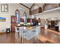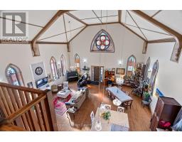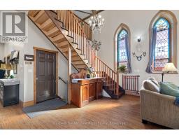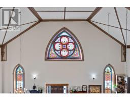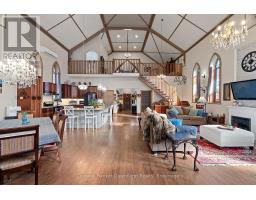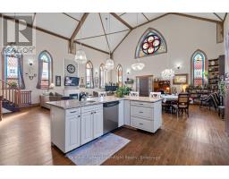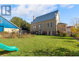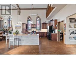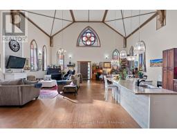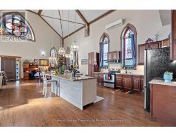Once a place of worship, now a one of a kind residence, this 1895 brick church has been reimagined into a warm and fully livable home while preserving the character that makes it unforgettable. The moment you enter the great room, the space opens dramatically with soaring ceilings, original stained glass and an open layout designed for gathering. The main floor blends kitchen, dining and living into one impressive space anchored by a large island and framed with historic trim and arches. Also on this level is a bedroom, a 4 piece bath and main floor laundry. Upstairs, the loft style primary bedroom overlooks the main floor and features an ensuite with a double vanity and tiled walk in shower, with space for a generous wardrobe.The basement offers future potential with high ceilings, new windows, drywall started, rough ins for an additional bathroom and bedrooms and a separate entry from the front foyer which is ideal for multi use or future rental potential. Outside, the fenced yard is landscaped and offers a firepit area, storage shed with lean to and parking. The home sits in the hamlet of Whitechurch, minutes to Lucknow and Wingham for amenities and about 20 minutes to the beaches of Lake Huron.The property has also been operated as an Airbnb and has been a well loved stop for travellers and quiet getaways. The seller is open to selling it fully furnished, allowing a new owner to step into a turnkey residence or continue the Airbnb use immediately. For someone looking for more than a house, something with history, and long term potential, this converted church is a rare offering. (id:46441)