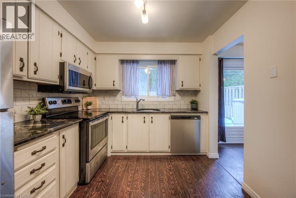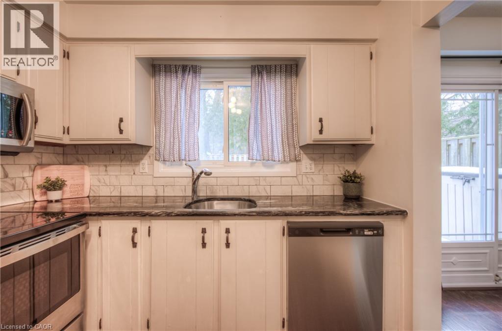 OPEN HOUSE: Sat. Oct 4 & Sun. Oct 5 from 1 to 3 PM. GREAT OPPORTUNITY — PRICED TO SELL!! Don't miss this rare find! A great starter home in a townhouse condo — at one of the best prices in the area! Being an end unit makes it more private, almost like living in a semidetached home. Perfect for families or as a multi-room rental, thanks to its flexible layout with 3+1 bedrooms and 2 full bathrooms. Ideal for commuters, just 8 minutes from 401 and only minutes from Conestoga College (Kitchener Campus). The kitchen feels bright and modern with plenty of natural light, stainless steel appliances, and granite countertops. Freshly painted throughout, this home also offers a spacious primary bedroom with walk-in closet. If your teenager spends extra time in the bathroom, no worries, there are two full bathrooms! The large, open rec room features big windows and brand new flooring, while the basement has one of the full bathroom, making it perfect for a mortgage helper or guest suite. The rec room can be used as bedroom. Enjoy outdoor living with a private backyard, ideal for BBQ gatherings. The area is quiet and there are no back neighbours. Come and see it for yourself — you'll love it! (id:46441)