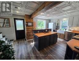 Come & enjoy what it is like to live on 1.19 acres outside of town with the convenience of a short drive to all amenities and Hwy 400 access, as well to MacLean Lake, North River, Coldwater River & Matchedash Bay for some great fishing or boating to Georgian Bay. This solid, charming home features level floors, 3 bedrooms with the 3rd currently set up as a walk in closet for the Master Bedroom that has a King Size Bed & 2 bathrooms (main floor 2 pc is plumbed for tub/shower). The current owners have loved living here for 7 + years and have enjoyed many a coffee on the front deck watching the sunrise or the shaded area of the deck on the warmer summer days & evenings. Features include a pool (which can be removed by seller should you not wish to have it) a covered porch with a hot tub & sitting area to enjoy listening to the rain on the deck with a BBQ line hup & a walk out to the pool making this area great for year round enjoyment. Completed upgrades include siding with exterior insulation, roof boards with rain shield & shingles, soffit, facia, eavestrough, windows doors, insulated & silent openers on the garage doors, drilled well, furnace, AC, flooring throughout, main floor laundry, both bathrooms updated, kitchen antique ceiling with pot lights, farm sink, pot drawers, stainless appliances, ice maker/dishwasher/stove with a built in thermometer, dishwasher, backsplash, vinyl click flooring, custom live edge/epoxy counter & bath vanity, barn board beams, spray foamed basement, 200 amp service with 60 panel to 24' x 36' garage which features a heated/insulated man cave with pellet stove & Window AC along with work benches, & 2 bays with loft storage and a large fenced yard for the kids and dog make this truly a must see home to appreciate all it has to offer so call today to check it out. (id:46441)