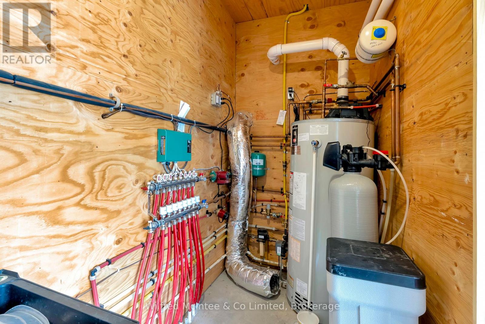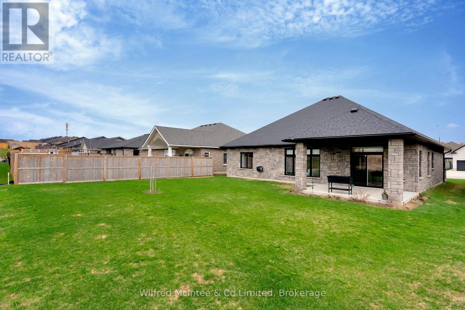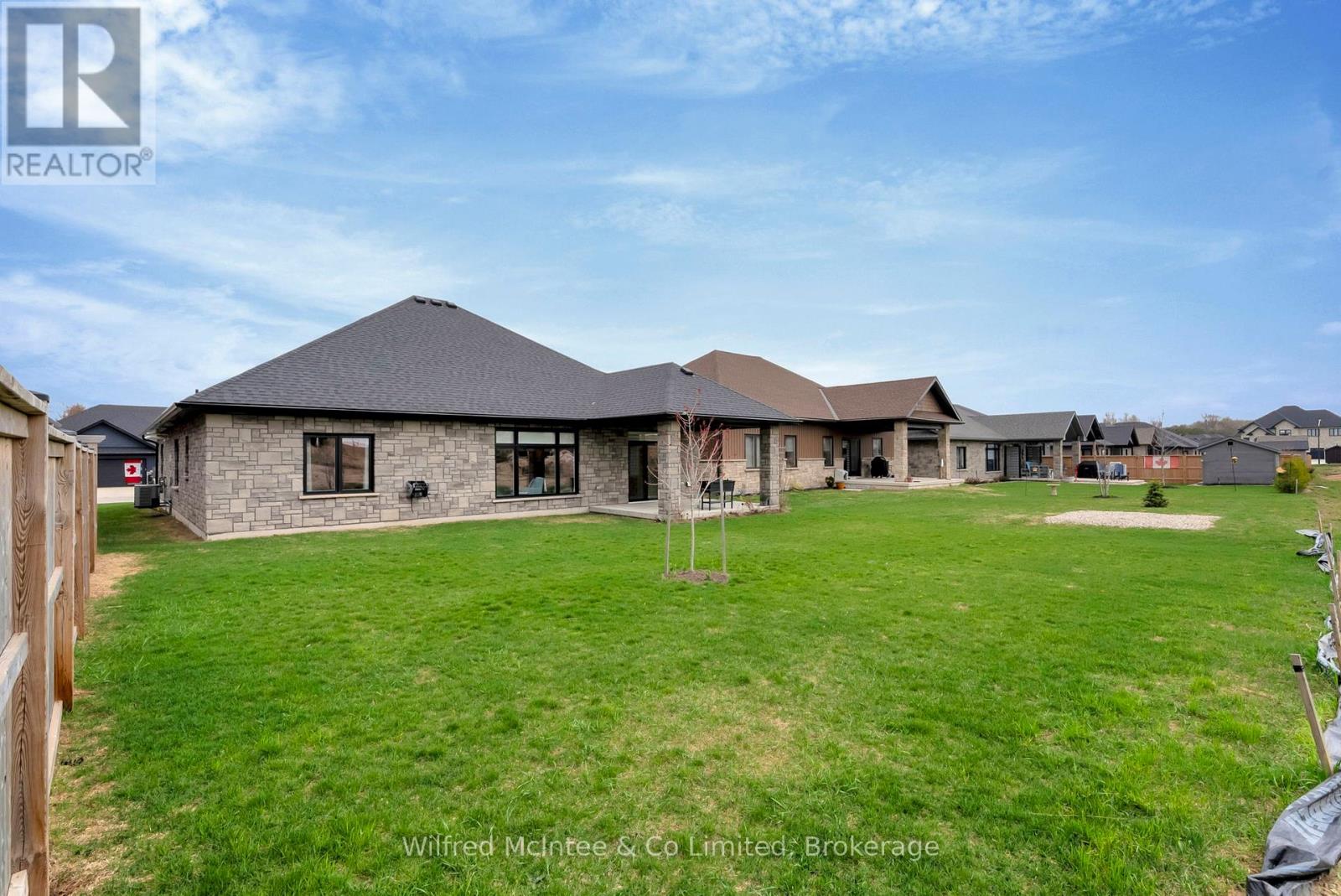 Welcome to this stunning 1800 sq. ft. slab-on-grade bungalow located in the sought-after Walker West Estates in Walkerton. Built in 2021, this modern home offers luxurious one-level living with an emphasis on comfort, accessibility, and contemporary design. Step inside to soaring 9 ft ceilings and an open-concept layout that seamlessly connects the white kitchen complete with quartz countertops, a central island with breakfast bar to the bright dining and spacious living area.  The home features three generously sized bedrooms, including a spacious primary suite with a walk-in closet and sleek 3-piece ensuite. The two additional bedrooms share a stylish 4-piece bath, ideal for family or guests. Enjoy year-round comfort with dual heating systems: in-floor radiant heat throughout the home and garage, plus gas forced air with central A/C. The oversized double car garage lined in easy care Trusscore offers ample space with bonus of storage in the attic. Relax on the covered front porch or entertain in the private, covered, rear 12' x 16' patio ideal for enjoying the outdoors, rain or shine. If you're looking for move-in ready, modern, and low-maintenance living in one of Walkerton's most desirable neighborhoods, this home is a must see! (id:46441)
