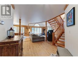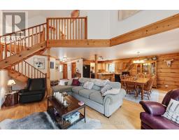 Discover your ideal family cabin in the woods! This 3-bedroom, 2-bathroom Confederation Log cabin is just minutes from the Georgian Peaks ski hill and Thornbury. It features an open concept layout with a cozy living area, kitchen, and dining space, plus a bedroom and bath on the main floor. Upstairs, find two more bedrooms and a 5-piece bath. Enjoy a wood stove, spacious garage, and a balcony overlooking the Georgian trail. Deeded beach access across the street offers sandy shores with stunning views. Recent upgrades include a new roof (2023), complete exterior refinishing (2023), new furnace (2024), new driveway (2025), hot water tank (2021), upgraded bathroom and kitchen plumbing and light fixtures (2024). This charming cabin is perfect for creating lasting family memories. Close to hiking, biking, golf, skiing and all the area's amenities. (id:46441)
