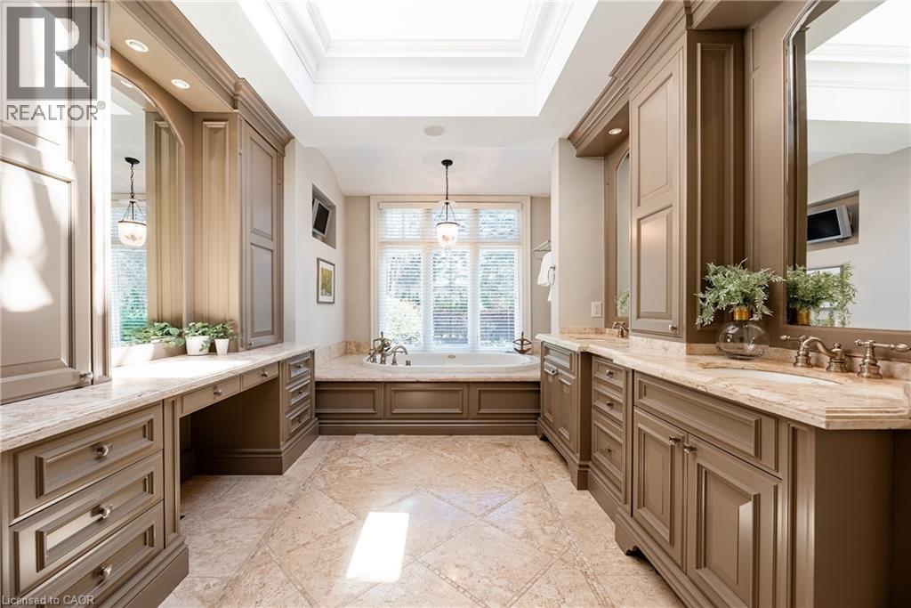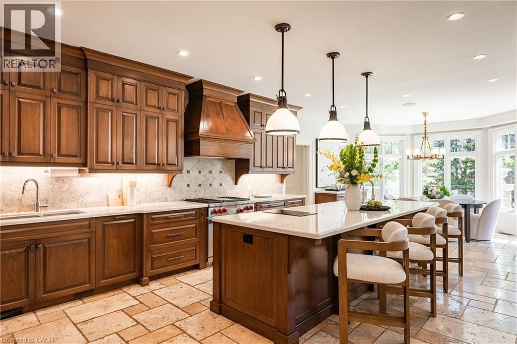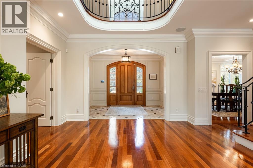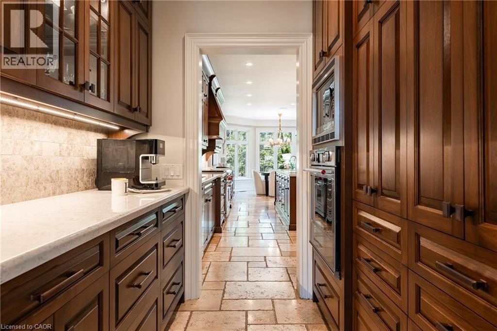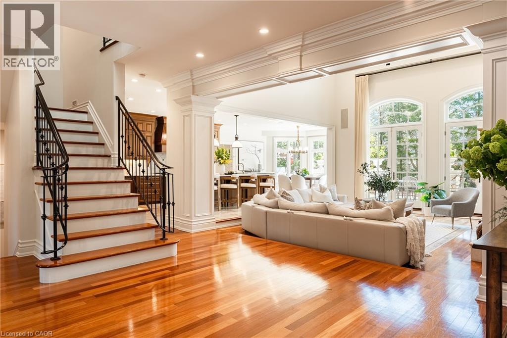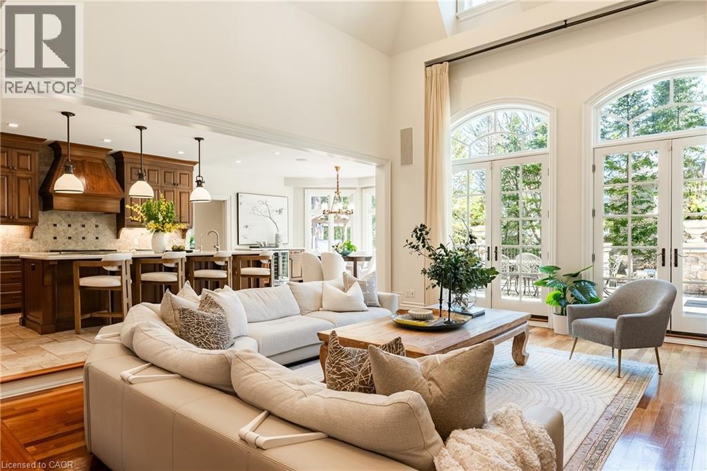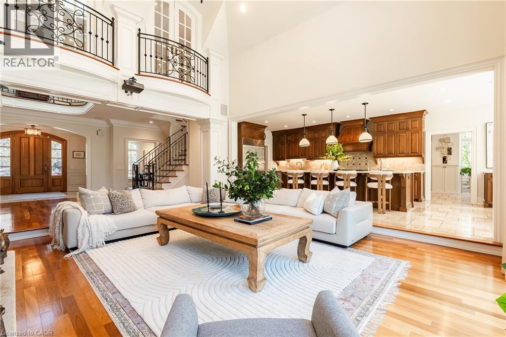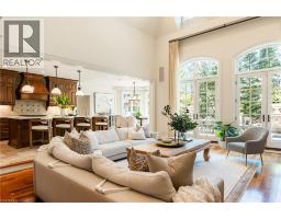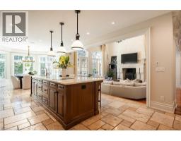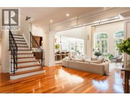 Tucked behind stately gates and mature trees for exceptional privacy and security, this custom residence sits on just under half an acre and offers a timeless blend of elegant architecture and resort-inspired outdoor living in prime Southeast Oakville. Designed for both entertaining and everyday living with soaring ceilings, oversized windows and refined finishes which create a bright, sophisticated interior. At the heart of the home is a beautifully appointed chef’s kitchen with a large centre island, premium appliances, servery and a sun-filled breakfast area overlooking the backyard. Just beyond, the dramatic family room with ceiling height and a wood-burning fireplace creates a warm yet impressive gathering space. A true highlight of the home is the main floor primary suite - a rare and highly sought-after feature. Privately positioned and beautifully scaled, this serene retreat offers a spacious walk-in closet and spa-inspired ensuite, creating an ideal layout for long-term living. Thoughtfully designed mudroom/laundry with separate exterior access, garage entry and private access to the second-floor nanny suite complete the main level. The second level provides exceptional family accommodation with generously sized bedrooms, beautifully appointed bathrooms and a flexible in-law/nanny suite. The expansive lower level features a media room, recreation/games areas, wet bar, wine cellar, gym, additional bedroom and ample storage. Outdoors, the property transforms into a private backyard retreat, complete with mature landscaping, a spectacular in-ground pool, multiple seating and entertaining areas, and a charming, covered cabana/lounge designed for unforgettable summer entertaining. Located moments to the lake, top public and private schools, parks, shopping and commuter routes, this is a rare opportunity to own a gated estate in one of Oakville’s most prestigious neighbourhoods. (id:46441)