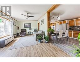 $593 Monthly21 Elm Street – Meticulously Maintained & Full of Character in Mini Lakes. Discover cozy comfort and easy living at 21 Elm Street, a well-cared-for 2-bedroom, 1-bathroom bungalow in the heart of Mini Lakes—a vibrant gated community offering condo-style ownership and year-round enjoyment. This bright and cheerful home features a wrap-around deck, a sun-filled eat-in kitchen, and laminate flooring throughout. Unique touches and pride of ownership are evident in every corner, from the charming layout to the thoughtfully maintained finishes. You’ll also find a 3-season gazebo/sunroom—perfect for morning coffee, afternoon reading, or evening visits with friends. Stay comfortable year-round with natural gas heating, central air conditioning, and the added ambiance of a gas fireplace. Outdoors, enjoy double-wide parking, a powered shed for additional storage, and easy access to all of Mini Lakes’ activities. Whether you’re looking to downsize, retire, or simply embrace a slower pace in a welcoming and well-connected community, 21 Elm Street offers charm, quality, and simplicity—all just minutes to the 401 and south Guelph. (id:46441)