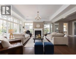 Elegant lakeside living in SW Oakville. Welcome to 21 Lambert Common! Tremendous opportunity to own a custom-built executive home by the water on a private road in the highly sought-after & exclusive community of Edgewater Estates. Just a stones throw away from the highly esteemed Appleby College. Enjoy the peace of mind that comes with an overnight neighbourhood security patrol. Discover over 6,700 sq.f t. of refined living space in this updated residence. Step into the grand foyer feat. 20' ceilings & heated porcelain floors that set the tone for this exceptional home. The formal LIV & DIN rooms showcase 10' tray ceilings, elegant wall paneling & moldings, while oversized windows bathe these spaces in natural light. The chef-inspired kitchen boasts premium Wolf B/I appliances & stovetop, complemented by a generous island and servery. Enjoy casual meals in the breakfast area w/ a W/O to a stone patio. The open, bright & spacious great room is surrounded by LRG windows, centers around a gas fireplace & flows seamlessly to an office w/ cathedral ceiling. Step down into the remarkable glassed-in sunroom - perfect for those special morning coffee moments w/ loved ones. Surround yourself in natures beauty & simply enjoy. A powder room, mudroom w/ separate entrance & laundry area (garage access) add convenience to the main floor plan. Upstairs, the primary impresses w/ 12 ceilings, a gas fireplace, LRG W/I closet & 5PC ensuite feat. a steam shower, soaker tub & heated floors. 3 additional bedrooms, each with W/I closets & private or shared ensuite privileges complete this floor. The lower level with W/O to rear yard offers a recreation area, fireplace feature wall, exercise room, games area w/wet bar, 2nd laundry, den, powder room, bathroom and 5th bedroom w/ ensuite.The backyard retreat includes an outdoor kitchenette, waterfall feature wall & decorative concrete fire bowl. Privacy, security, luxury, quality, beauty & comfort. This is 21 Lambert Common. Luxury Certified (id:46441)
