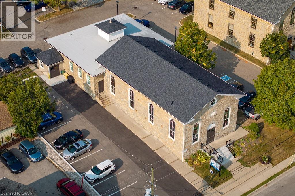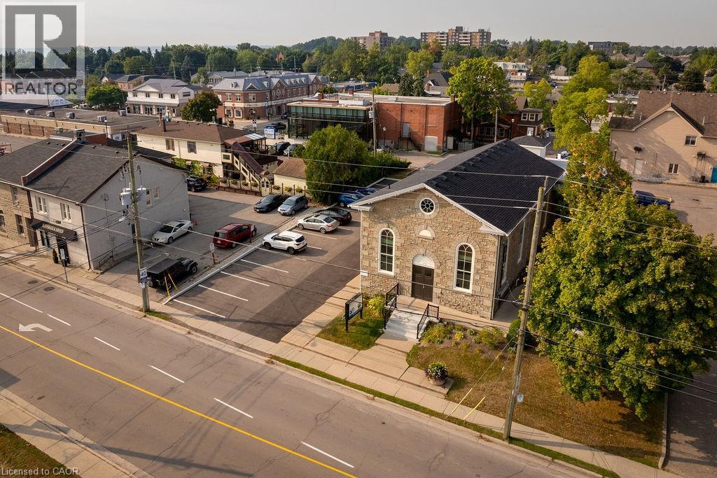 Step into a truly unique commercial opportunity with this 2,541 sq. ft. space located in the front of a beautifully converted stone church circa 1865. Featuring soaring ceilings and a choir loft, this one-of-a-kind property blends historic charm with modern functionality. Zoned C5a, it allows for a wide range of permitted uses—including retail, service, commercial, entertainment and more—making it ideal for businesses seeking character, flexibility and visibility. The unit includes 8 dedicated parking spaces, is situated just steps from bustling local businesses and within walking distance to established residential neighborhoods. Enjoy unbeatable connectivity with easy access to Hwy 403, 407, Hwy 5 and GO/public transit options nearby. Heat and water are included in rent, with tenant responsible for hydro. Don’t miss this rare chance to set your business apart in one of the area’s most distinctive commercial spaces. (id:46441)