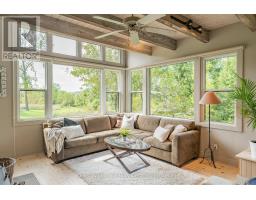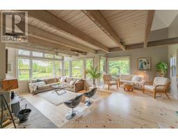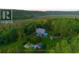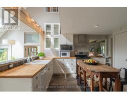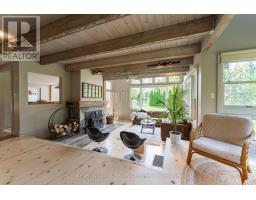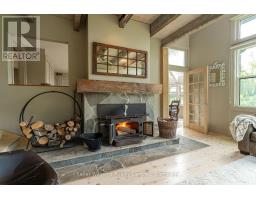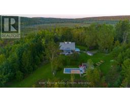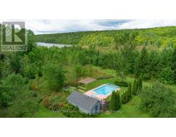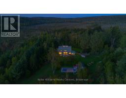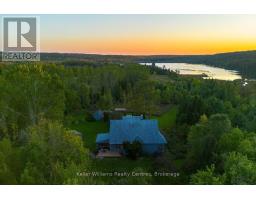 Tucked into 25 acres of forested privacy and stretching across 900+ feet of shoreline on wild and raw Gowan Lake, this is a retreat you'll never want to leave. One of just two homes on the Lake, with nothing but protected forest in every direction, this custom-designed chalet was built to celebrate privacy, presence, and peace. Inside, you'll find 2,400 sq ft of designer-curated interiors, where every detail reflects the natural surroundings: velvety hand-stained pine flooring, rustic timber beams, natural slate, and soft earthy tones that bring the outdoors in. A stunning atrium dining room with 24-foot vaulted ceilings frames the forest like art, while the farmhouse kitchen--with fresh white cabinetry, butcher block countertops, and apron sink--offers a bright and functional space for slow mornings and shared meals. The sunken California-style living room rises as an architectural showpiece, wrapped in windows, anchored by a stone-clad wood-burning fireplace, and finished with tongue-and-groove ceilings. Upstairs, the lofted primary suite is open, airy, and beautifully bespoke, with 18-foot ceilings and a private balcony overlooking Gowan Lake--the perfect place to watch the sun rise or the fog lift off the water. Two more bedrooms on this level share a thoughtful 4-piece bath with a soaker tub and separate water closet. Above, 2 ladder-accessed loft bedrooms create a whimsical hideaway for the littlest adventurers. Outdoor living is as extraordinary as the indoors. Wrap-around deck, a screened-in sunroom, private loop trail, and a gentle path to the water's edge. A 28-foot-long saltwater pool, tucked into the trees, adds an unexpected touch of luxury for warm autumn mornings or summer afternoons. And with fibre-optic internet, you're as connected as you want to be--and as off-grid as you need. This isn't just a lakefront property. It's a soulful, style-forward sanctuary. Gowan Lake isn't for everyone... just the lucky few. (id:46441)