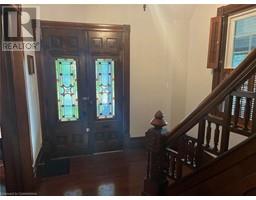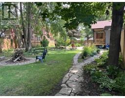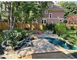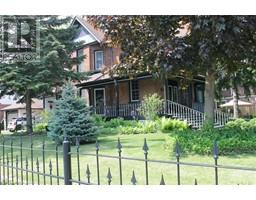 For more info on this property, please click the Brochure button. Discover the perfect blend of historical charm and modern updates in this move-in-ready home, situated on an oversized, mature treed corner lot. With potential for severance into three lots or use as a single-family property, this Zoned RU 3 (duplex/triplex) gem offers endless possibilities. Step inside to admire the timeless elegance of original red oak woodwork, 3 functional pocket doors, an ornate fireplace with a new gas insert, 12” baseboards, detailed window moldings, and stained glass accents throughout. With ceilings over 9 feet high, the home feels both spacious and inviting. Modern updates seamlessly enhance its historic features, offering comfort and practicality. This charming home boasts 3 spacious upstairs bedrooms, each with a closet, and a versatile main-floor den or fourth bedroom, ideal for a home office or guest space. Enjoy the convenience of 2.5 baths, including a master ensuite with heated tile flooring, and a second-floor laundry. The updated gourmet kitchen is a chef’s dream, featuring a large center island, peninsula, custom tilework, tin ceiling, ample cabinetry, and a high-end six-burner gas stove with a double oven. Entertain in the formal dining room with built-in china cabinets or relax outdoors on one of three covered porches. The fully fenced yard is a serene retreat, complete with a water feature, pond, and creek. Additional highlights include a heated workshop, single-car garage, carport, garden house, new mudroom, and a finished basement with a rec room, bonus room, wine cellar, and extra storage - potential for a future in-law suite. Recent upgrades include new windows, a gas furnace, air conditioning, and a gas fireplace. (id:46441)