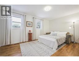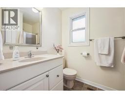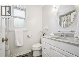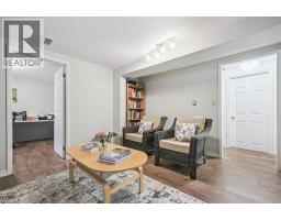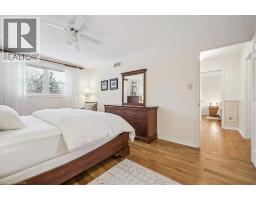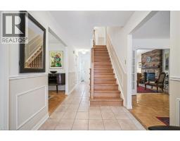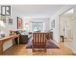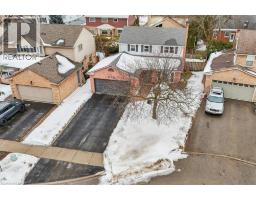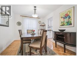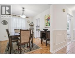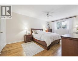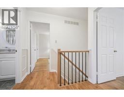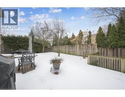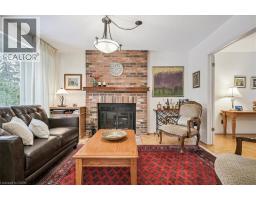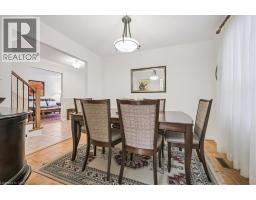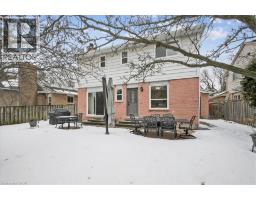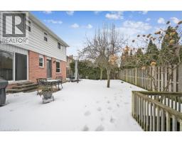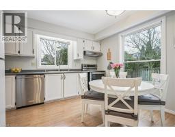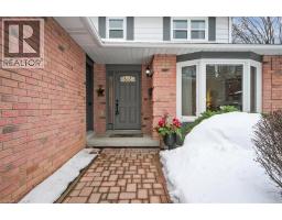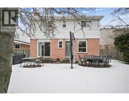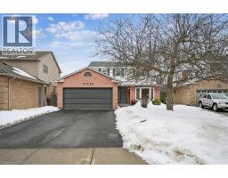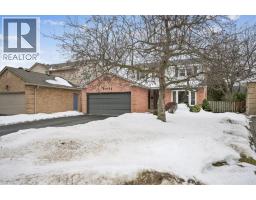 Nestled at the top of a quiet court in central Burlington, this beautifully maintained Monarch-built family home offers 3+1 bedrooms, 3.5 bathrooms and approx. 2,432 sq. ft. of finished living space including the basement. An ideal location for families and commuters alike, just an 8-minute walk to Tom Thomson Public School and minutes to downtown Burlington's shops, restaurants, waterfront, Spencer Smith Park, Brant Street Pier, Art Gallery of Burlington and Joseph Brant Hospital. Quick access to Burlington GO Station and Hwy 403, with Costco and Walmart close by.Curb appeal is exceptional with a double driveway, parking for four vehicles, attached double garage, interlocking stone curbing, manicured gardens and a welcoming stone walkway. The private backyard is a tranquil retreat featuring a spacious interlocking patio, mature trees, lush perennial gardens and a fruit-bearing pear tree-perfect for entertaining or enjoying quiet summer evenings.Inside, a striking oak staircase with black metal spindles anchors the foyer. The formal living room with parquet flooring flows through French doors into the warm family room with gas fireplace and walkout to the patio. The bright eat-in kitchen offers ample white cabinetry, stainless steel appliances (except fridge), updated laminate flooring and a generous breakfast area with treetop views. A separate dining room and convenient 2-piece bath complete the main level.Upstairs, hardwood flooring (2021) extends throughout the hallway, bedrooms and closets. The primary suite features a walk-in closet and private 3-piece ensuite, while two additional bedrooms share the main 4-piece bath. The finished lower level offers a versatile rec/media room with wide-plank laminate flooring (2022), a fourth bedroom or home office, and a full 3-piece bath. Numerous updates including roof shingles, windows (except patio door), front and rear doors, furnace and A/C complete this move-in ready home in a premium court location. (id:46441)