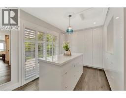 Welcome to the ultimate lakefront lifestyle. This fully renovated 3-level townhouse hass unobstructed, panoramic views of Lake Ontario so close to the water, you can practically dip your toes in. Located just 600 metres from downtown Burlington, this is a rare blend of tranquility and convenience. This 3-level townhouse (1,600 plus SF) has 1 bedrooms (potential for 2nd if you converted large walk-in closet back into a bedroom), 3 bathrooms (2 full, 1 powder) and 4 separate patio/terraces (huge 400 SF lower terrace at the water's edge). In 2020 this unit was completely gutted to the studs and rebuilt by the renowned Bespoke Home Solutions with a total renovation budget exceeding $500K . The gourmet kitchen has been masterfully crafted with designer finishes including: Insinkerator food waste disposal, hot water tank/dispenser, Porter & Charles warming drawer, Built in Miele Appliances (including a $7K plumbed in Coffee Machine), microwave/convection oven, Combi Steam Oven, Dacor Fridge & Freezer and Gravelle custom cabinetry throughout. The spacious primary suite is a true retreat, featuring a spa-inspired ensuite with heated floors, a two-person soaker tub, and a private balcony with stunning sunrise views over the lake. The second bedroom has been converted into a designer walk-in closet with custom cabinetry and a centre island (easily reverted to a bedroom if desired). Lower level family room has a full bathroom, ample storage and ability to have a guest suite with use of a murphy bed. Backwater valve in basement. Home is equipped with Sonos built in ceiling speakers with hooked up amplifiers and speaker selector options. Large 400 SF back terrace is fashioned with a BBQ gas line and has a hook up for a Hot Tub. (id:46441)