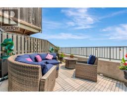 Welcome to the ultimate lakefront lifestyle. This fully renovated 3-level townhouse hass unobstructed, panoramic views of Lake Ontario so close to the water, you can practically dip your toes in. Located just 600 metres from downtown Burlington, this is a rare blend of tranquility and convenience. This 3-level townhouse (1,600 plus SF) has 1 bedrooms (potential for 2nd if you converted large walk-in closet back into a bedroom), 3 bathrooms (2 full, 1 powder) and 4 separate patio/terraces (huge 400 SF lower terrace at the water's edge). In 2020 this unit was completely gutted to the studs and rebuilt by the renowned Bespoke Home Solutions with a total renovation budget exceeding $500K . The gourmet kitchen has been masterfully crafted with designer finishes including: Insinkerator food waste disposal, hot water tank/dispenser, Porter & Charles warming drawer, Built in Miele Appliances (including a $7K plumbed in Coffee Machine), microwave/convection oven, Combi Steam Oven, Dacor Fridge & Freezer and Gravelle custom cabinetry throughout. The spacious primary suite is a true retreat, featuring a spa-inspired ensuite with heated floors, a two-person soaker tub, and a private balcony with stunning sunrise views over the lake. The second bedroom has been converted into a designer walk-in closet with custom cabinetry and a centre island (easily reverted to a bedroom if desired). Lower level family room has a full bathroom, ample storage and ability to have a guest suite with use of a murphy bed. Backwater valve in basement. Home is equipped with Sonos built in ceiling speakers with hooked up amplifiers and speaker selector options. Large 400 SF back terrace is fashioned with a BBQ gas line and has a hook up for a Hot Tub. (id:46441)