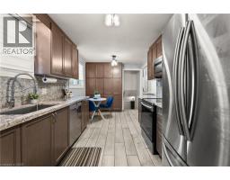Welcome to 215 Berkindale Drive, a beautiful 4 level backsplit with separate side entry in the heart of Stoney Creek! Offers 4 finished levels of living space and a versatile layout ideal for families or multi-generational living on an incredibly large lot. This home features a updated kitchen (2017) with stylish maple cabinetry, huge pantry wall, granite countertops and stainless steel appliances. The open and functional floor plan offers laminate & hardwood flooring throughout - no carpet anywhere - and spacious principal rooms filled with natural light. The fully finished lower levels include a large family room with a cozy gas fireplace, a separate side entrance providing in-law potential and plenty of storage. Oversized Cantina with Backflow Valve is a nice bonus! Step outside to your private backyard - a fully fenced 40' x 110' lot featuring a two-tiered deck & shed perfect for entertaining or relaxing year-round. Additional highlights include a double wide concrete driveway, extra deep garage with access from inside and an insulated garage door. Ideally located minutes to shopping, excellent schools, Confederation Park, Pickle ball, Waterfront trails, the Red Hill Expressway & QEW. Move-in-ready; this family neighbourhood is a dream location! (id:46441)