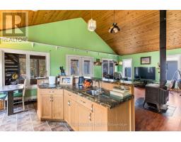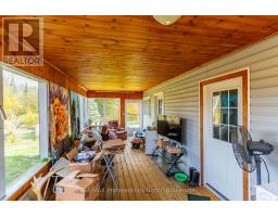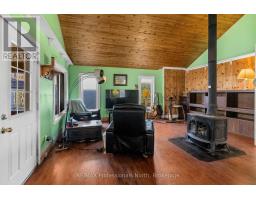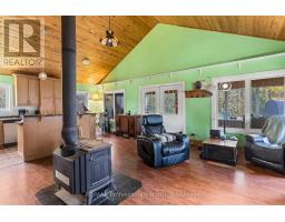 PRIVATE COUNTRY BUNGALOW ON 33 ACRES WITH POND. Tucked away on 33 acres of peaceful privacy, this inviting one-level bungalow offers a quiet country lifestyle just 7 minutes to the town of Minden and all amenities. Enjoy the best of both worlds; a private natural setting with easy access to shops, restaurants, and several public beach access points only minutes away. Inside, you'll find practical living space with an open-concept kitchen and family room. The kitchen's large island makes a great spot for gathering, while the cathedral ceiling and woodstove add warmth and character to the main living area.There are two full bedrooms, including a 2-piece ensuite and a 4-piece main bath along with a third bonus room that is combined with laundry. Both back bedrooms have walkouts to a screened-in porch that spans the entire back of the home; the perfect place to enjoy a morning coffee or quiet evening surrounded by nature. A second screened-in porch runs along the front, offering even more space to relax and take in the peaceful surroundings. Outside, the property is a nature lovers dream. Explore your private pond, wander the acreage, or simply sit and listen to the sounds of the woods. A newly built 24x24 detached garage (2023) provides excellent storage for vehicles, tools, or recreational equipment. With a drilled well, septic and forced air propane furnace, this home is set up for comfortable year-round living. Whether you're looking for a quiet country residence or a weekend retreat, this property offers a relaxed, natural lifestyle surrounded by the beauty of Haliburton County. (id:46441)