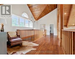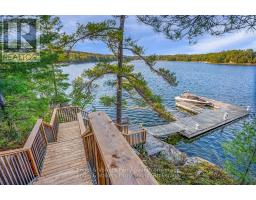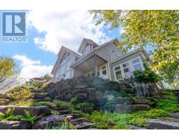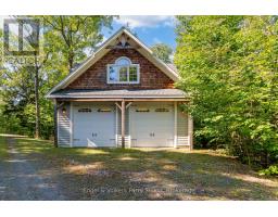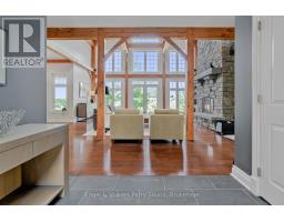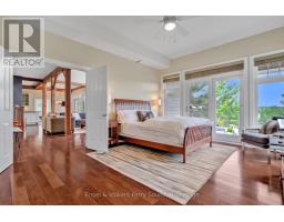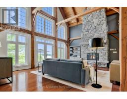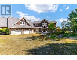 Prestigious Year-Round Georgian Bay Estate | Perched atop a sheltered granite outcropping, this custom Georgian Bay masterpiece offers over 3,600 SF of refined living space where timeless craftsmanship meets modern luxury. Designed with a timber frame & accented by soaring post-and-beam construction, the home commands sweeping views of tranquil Carling Bay; an address synonymous with prestige and privacy. Set on nearly 4 acres of natural beauty with 331 feet of deep, clean shoreline, this Cape Cod inspired residence has been celebrated in Canadian Homes & Cottages magazine for its architectural brilliance and flawless execution. Granite walkways, handcrafted stone staircases and artfully designed landscaping seamlessly blend the property with its rugged, picturesque surroundings. The grand great room impresses with its 32-foot cedar ceilings, striking timber trusses & arched windows framing the bay beyond. A magnificent stone fireplace anchors the space, while heated cherry wood and tile floors extend warmth throughout. The gourmet kitchen is outfitted with granite countertops, stainless steel appliances, and a propane stove perfect for both culinary creations and effortless entertaining. With five bedrooms, including luxurious guest suites on the upper level, and a dedicated games wing, the home is designed for both intimate family living and large-scale hosting. Expansive patios, tiered outdoor spaces and breathtaking vistas ensure every moment is embraced in luxury. Car collectors and boating enthusiasts will appreciate the attached and detached garages, providing space for cars, boats, and prized possessions. The private dock offers deep-water mooring and full electrical connections to accommodate large vessels. Enjoy the convenience of year-round municipal road access. Opportunities to own along Beacon Point are exceptionally rare, making this estate not only a home, but a true legacy property on Georgian Bay. (id:46441)