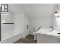 Welcome to this beautifully renovated 2-bedroom, 1-bath coach house in a desirable downtown Hamilton neighborhood. This private, move-in-ready unit has been fully updated with modern finishes and thoughtful upgrades throughout. The bright, open layout features new flooring, updated lighting, and oversized windows that fill the space with natural light. The living area offers a cozy fireplace and ceiling fan for year-round comfort. The stylish kitchen boasts stainless steel appliances, contemporary cabinetry, Corian countertops, and a sleek backsplash—perfect for everyday living. The bathroom has been completely refreshed with modern fixtures and ample storage. Both bedrooms are generously sized, with the primary bedroom including a walk-in closet. Additional conveniences include on-site laundry (pay-per-use), shared outdoor space, and garage parking available for an additional $200 per month. Ideally located near transit, shops, restaurants, and daily amenities, this home combines modern comfort with unbeatable convenience. (id:46441)