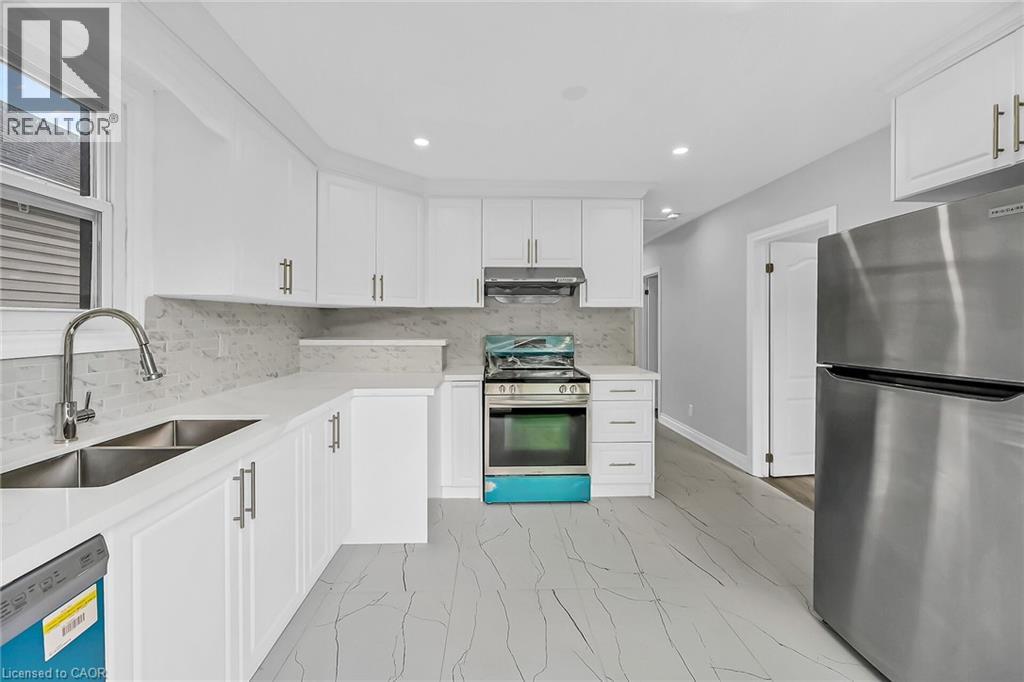 Legal Duplex in Prime Hamilton Location – Ideal Investment or Multi-Family Living. Welcome to this beautifully renovated legal duplex offering 3+2 bedrooms and 2.5 bathrooms in a highly desirable Hamilton neighbourhood with quick access to Highways. The upper level features three spacious bedrooms, a bright and airy living room with stylish vinyl flooring, pot lights, and a large picture window that fills the space with natural light. The modern kitchen is equipped with stainless steel appliances, a quartz countertop, tile backsplash, and ample cabinetry. The lower level impresses with a large open-concept living space, a stunning kitchen, and two generously sized bedrooms, plus a full bathroom. Additional highlights include: High end baseboards, trim, and hardware. Newer windows and doors, 200Amp hydro Service, ESA certified. Also includes new and updated plumbing and drainage system, main water supply line upgrade to 1 copper pipe. All construction work done with city Building permit (according to OBC)., laundry for each unit, Close proximity to Centre Mall, parks, dining, shopping, and recreational facilities and a vibrant, family-friendly neighbourhood with excellent amenities. Don't miss this exceptional opportunity to own a versatile property in one of Hamilton's most convenient and connected locations! (id:46441)