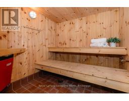DETACHED SHOP + SECOND DRIVEWAY. In Law capability. Welcome to this charming piece of paradise in the heart of Stayner. Nestled on a PRIVATE 93' x 158' lot surrounded by mature trees, this beautifully updated 4-bedroom, 4-bathroom home offers exceptional space, comfort, and privacy. The backyard is an entertainers dream featuring an above-ground pool with a large composite deck, hot tub, outdoor kitchen, dining area, lounging zones, and a cedar sauna. A cozy she shed adds the perfect escape for quiet moments. One of the standout features is the detached oversized garage/shop with soaring ceilings, hydro, and its own driveway is deal for a workshop, home business, or extra storage. There's also ample room to park boats, trailers, or multiple vehicles. Inside, the home impresses with a stylish front mudroom/laundry with barn door, two bedrooms, and a full bathroom on the entry level. The main floor offers a spacious dining area with room for a harvest table, a classic kitchen with quartz counters, farmhouse sink, breakfast bar, and stainless steel appliances, along with a large living room and sunken family room with vaulted ceilings, gas fireplace, built-ins, and walkout to the backyard. The primary suite includes a Juliet balcony, 4-piece ensuite, and a 2024 custom closet system. The lower level adds even more living space with a rec room, new wet bar with wine fridge and butcher block counters, a 3-piece bath, and an exercise room across from the sauna. Additional highlights include an RO water system, 2015 AC and furnace, extra attic insulation, built-in sound system, and a full renovation completed in 2002. Looking for a unique home that is meticulous- this is the one! (id:46441)