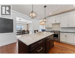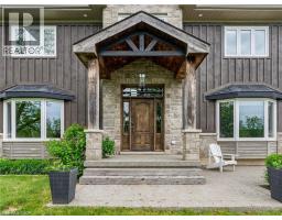 This stunning 5-bedroom, 2.5-bathroom home spans over an energy efficient 3,800+sq/ft and is perfectly positioned to overlook the breathtaking Grand River. Nestled on a generous lot overlooking rolling fields at the back and river access just across the street, it’s an ideal setting for those who love the outdoors. Adding to its appeal, a massive 100’ x 40’ detached shop provides endless possibilities for hobbies, storage, or business use (w/ high speed fibre internet). The main floor boasts a spacious and inviting layout with 9ft ceilings, featuring a custom kitchen with a wood-paneled ceiling, stone countertops, a stylish herringbone backsplash, and a large island—perfect for gathering with family and friends. The adjacent dining room, with its tray ceiling and wood accent wall, offers picturesque views of the Grand River. The oversized great room is a true showstopper, complete with a floor-to-ceiling stone fireplace, vaulted ceiling, and expansive windows that frame stunning views in every direction. Step through one of two patio doors to your private outdoor oasis, featuring a large covered patio and built-in outdoor kitchen, ideal for entertaining. On one elevated side of the home, the primary suite offers a peaceful escape with a walk-in closet and a luxurious ensuite, complete with a custom tile shower. The second level hosts four additional bedrooms and a full 4-piece bathroom. The versatile basement offers even more potential, with its own private entrance from the attached double garage, making it an excellent option for an in-law suite or additional living space. For those needing extra room for vehicles, equipment, or recreational toys, this property delivers! The huge concrete parking area and driveway ensure ample outdoor storage/parking for vehicles/trailers. Don’t miss this rare opportunity to own a spectacular home in a prime location with endless possibilities! Luxury Certified (id:46441)