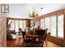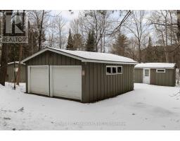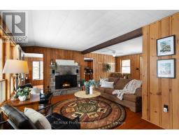 Tucked quietly along the sought-after Hwy 60 corridor, just moments from the iconic entrance to Algonquin Park, this inviting Muskoka retreat offers that rare blend of nature, nostalgia, and attainable waterfront enjoyment. Set amongst the trees with peaceful views over Pen Lake, and only steps to the beach and boat launch, it is the kind of place where mornings begin with birdsong and coffee on the deck, and evenings wind down by the fire under a canopy of stars. Inside, the warmth of pine-lined walls brings you back to a time when cottages were simple, soulful, and built for gathering. The classic Muskoka stone fireplace, now thoughtfully updated with a modern propane insert anchors the living space, inviting long conversations, cozy movie nights, and that unmistakable relaxed feeling. An additional living area offers flexibility for families to spread out, relax, and reconnect. The kitchen is both functional, welcoming and has a touch of retro, with an eat-in layout, breakfast counter, and dedicated dining area that naturally becomes the heart of the home. With three comfortable bedrooms plus a flexible office or den, there's room here for work, rest, and everything in between-whether you are hosting weekend guests or settling in for a longer stay. Outdoors, this property truly shines. The oversized detached double garage is ready to house all your Muskoka essentials-from boats and snowmobiles to tools and toys-while the bonus outbuilding opens the door to future possibilities as a bunkie or creative retreat. Located in the heart of Lake of Bays District, minutes to Huntsville, this is your opportunity to enjoy the Muskoka lifestyle-close to water, wrapped in nature, and without the premium price tag of traditional waterfront. A place where memories are made, stories are shared, and the pace of life feels exactly right. (id:46441)