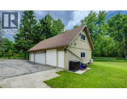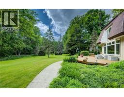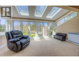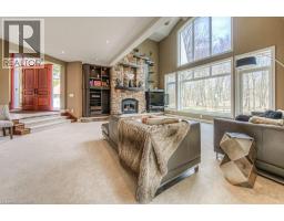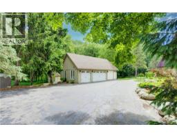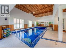 JUST MINUTES FROM THE CITY !This stunning executive retreat sits on nearly two acres of picturesque landscape, offering over 6,000 square feet of finished living space designed for a lifetime of comfort, entertainment, and tranquility. Swim year-round in the impressive 15’x30’ indoor swimming po ol, complete with patio seating, a bathroom, and a change room. Floor-to-ceiling windows surround the space, providing breathtaking views of the lush, treed property. The sunken living room features a striking floor-to-ceiling woodburning fireplace with a beautiful brick facade, creating a warm and inviting atmosphere. Overlooking Martin’s Creek and century-old Sugar Maples, this space offers a truly picturesque setting. For added peace of mind, the home is equipped with a natural gas generator that can power the entire house and garage when needed. The triple-car garage provides ample space for vehicles and recreational equipment, along with a 9,000-pound hoist for car enthusiasts. Above the garage, a beautifully finished studio offers privacy for visiting family and friends. The fully paved driveway accommodates parking for 15 or more vehicles, making it ideal for entertaining guests. Additional luxury features include heated floors in the bathrooms and kitchen, a central vacuum system with broom chutes in the kitchen and laundry room, a fully fenced dog run, a wood storage shed, and 200-amp service. This is country living at its finest, with no overcrowded neighborhoods—just privacy, nature, and endless possibilities. Book your private tour today and experience this extraordinary home for yourself. (id:46441)