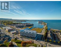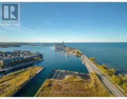 Unbelievable views from this brand new, bright and airy corner end unit in Collingwood's newest condominium community.  Welcome to Harbour House in downtown Collingwood, across from the harbour with breathtaking views of Georgian Bay, Collingwood Terminals, and Blue Mountain Escarpment.  Enjoy this upgraded 2 bedroom, 2 bathroom home with one level living including 1000 sqft of finished living space plus a 100sqft balcony.  Offering a beautiful waterfall quartz countertop with matching backsplash; built-in, hidden dishwasher; modern, coastal flooring; and a desirable open-concept layout.    Enjoy a fully equipped exercise room, dog wash station, guest suites, underground parking, fobbed entry and storage locker in a Scandinavian-inspired, architecturally stunning building which captures the nature-centred community perfectly.  Located steps to groceries, pharmacies, restaurants, trails, live music, shops and more.  A short drive to beaches, ski hills and golf.  Collingwood is a true four-season playground, and whether you are looking for a place to hang your hat on weekends, or a home in which to grow your roots, this is the perfect place to soak in the amazing Southern Georgian Bay community. (id:46441)