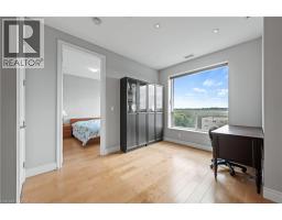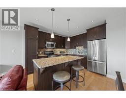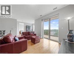 Experience upscale condo living at the Westmount Grand, one of Waterloo’s most prestigious addresses! This impressive west-facing 1-bedroom, 2-bathroom suite combines luxury, comfort, and convenience in the heart of Uptown Waterloo. Inside, you’ll find 9’ ceilings, a spacious open-concept kitchen with island, granite counters, stainless steel appliances, under-cabinet lighting, and a stylish backsplash. The expansive living and dining areas are framed by large windows, filling the space with natural light and showcasing panoramic city views. A bonus flex space offers the perfect spot for a home office. Hardwood flooring flows seamlessly throughout the main living area, adding warmth and elegance. The oversized primary bedroom is a true retreat, featuring a large window, dual closets, and a 5-piece spa-inspired ensuite. Additional highlights include a second full bathroom, in-suite laundry, and a storage room. Step out to the spacious covered balcony to take in spectacular sunsets! This unit also includes one underground parking space and one locker. Residents of Westmount Grand enjoy an array of first-class amenities: a rooftop terrace, library, fitness centre, sauna, entertainment room, and secure underground parking. Perfectly located, you’ll be steps from Uptown Waterloo’s restaurants, shops, and parks, and just minutes from the University of Waterloo and Wilfrid Laurier University. Luxury, lifestyle, and location—this condo has it all! (id:46441)
