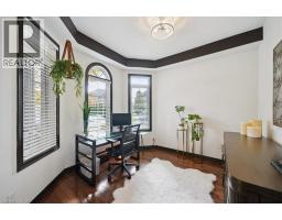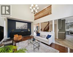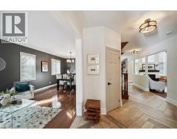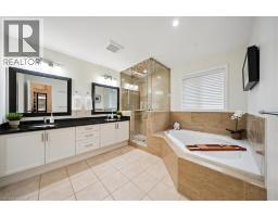 Welcome to this exquisite luxury residence, offering over 3,000 square feet of elegant living space plus a professionally finished basement, nestled against a tranquil wooded trail that provides the ultimate in privacy and natural beauty. This exceptional 4 + 1 bedroom, 5-bathroom home seamlessly blends comfort, sophistication, and functionality throughout. The backyard is a true retreat, designed for relaxation and entertainment, featuring three distinct sitting areas — including one with a firepit and six Adirondack chairs — evoking the ambiance of a private spa escape. Step through the inviting entry into a spacious foyer. The main level showcases rich hardwood flooring and a thoughtfully designed layout, including a formal living and dining area, a dramatic double-height family room with a cozy gas fireplace, and a separate private office ideal for working from home. At the heart of the home is the gourmet chef’s kitchen, appointed with a drinking filtration system, high-end GE Monogram Professional appliances: a side-by-side refrigerator, gas stove with built-in grill, range hood, and dishwasher. The large breakfast area overlooks the serene backyard and provides direct access to the outdoor living space. Ascend the elegant circular hardwood staircase to the upper level, where you’ll find four generously sized bedrooms and three full bathrooms. The luxurious primary suite boasts a separate sitting area, walk-in closet, and a stunning spa-inspired 5-piece ensuite bath. The finished lower level extends the home’s living space with a spacious recreation room complete with custom built-in shelving, an additional bedroom with its own 3-piece ensuite, a wet bar, and a dedicated media room, perfect for entertaining or relaxing with family. This extraordinary home offers luxury, privacy, and comfort in a picturesque natural setting — a rare opportunity not to be missed. (id:46441)