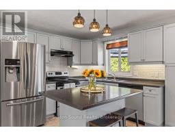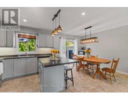 LOCATION! MOVE-IN READY! DREAM BACKYARD! Welcome to 224 2nd St W! Bright and inviting 3+1 bedroom raised bungalow in a family-friendly neighbourhood, on a quiet cul-de-sac. The open-concept main floor features a light-filled family room, a neutral kitchen with stainless steel appliances and island for extra counter space, eat-in dining with walkout to the oversize back deck. The primary bedroom has a walk-in closet and connects to a 4-pc cheater ensuite, while the lower level offers an updated 3-pc bathroom, 4th bedroom, fresh paint, storage, access to garage or backyard entry through laundry/utility room and a walkout sliding door to the covered patio - perfect for relaxing in the shade or the addition of a hot tub. Nice curb appeal with modern exterior, concrete driveway and stamped walkway. Enjoy the well maintained backyard with green space and entertainment space around the concrete firepit. Walking distance to local schools, Harrison Park, The Bruce Trail and West side amenities. This home is ready for family fun or quiet retirement living! (id:46441)
