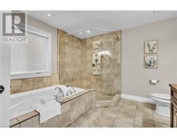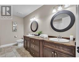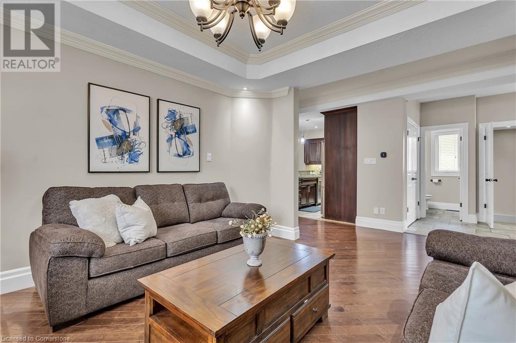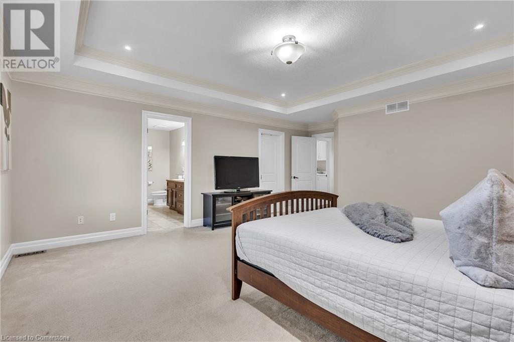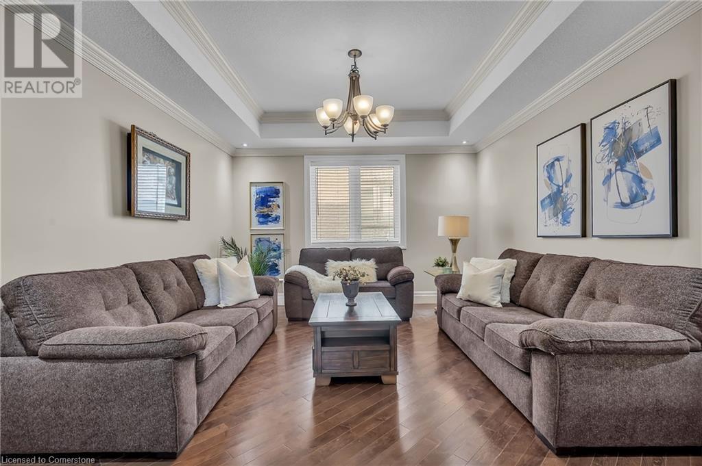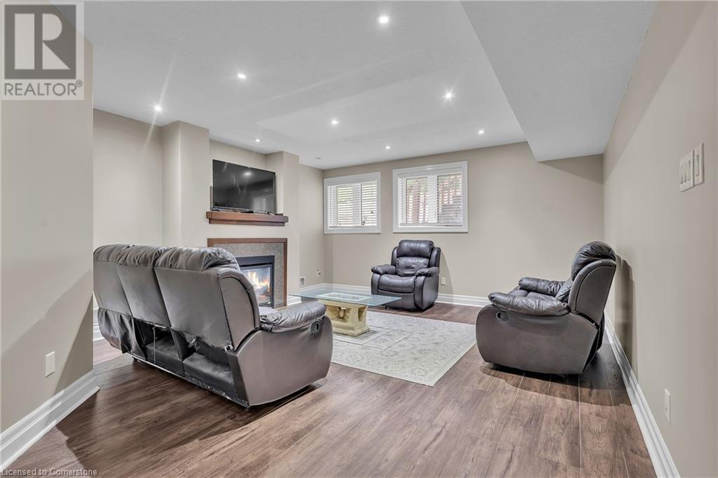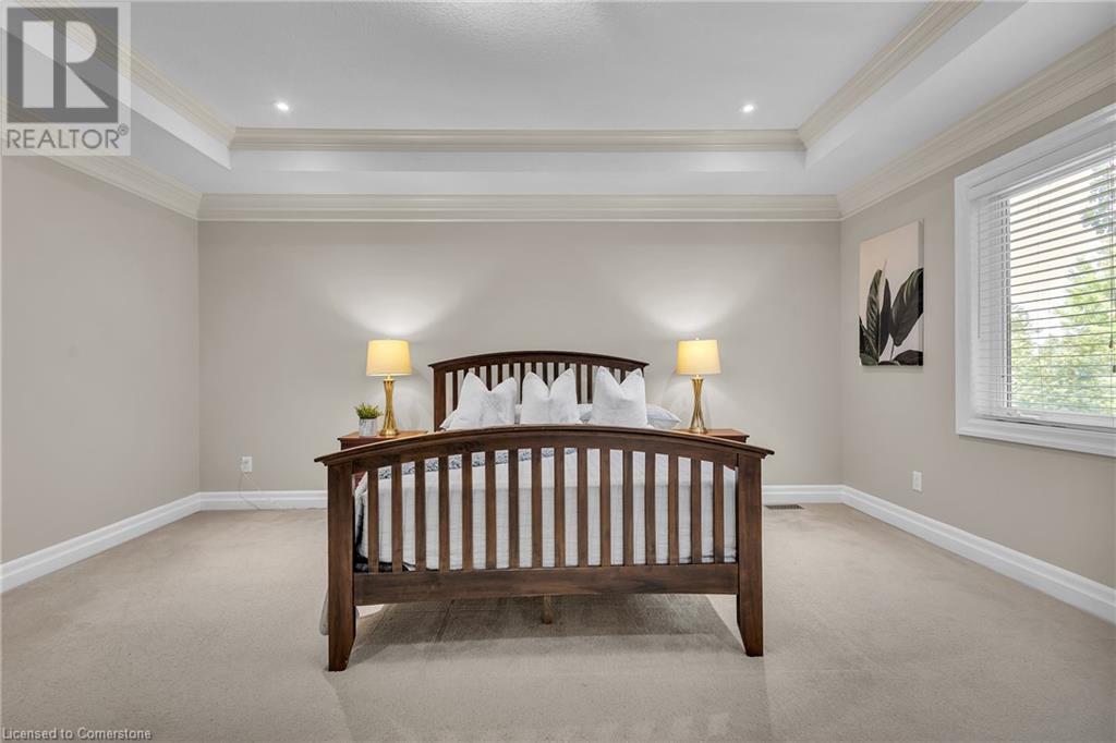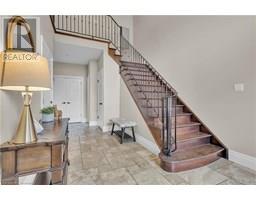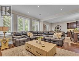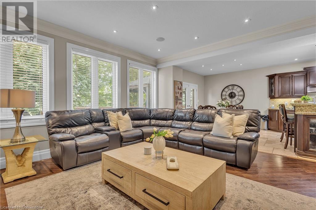 Freshly painted executive home located in the desirable Riverbank Estates neighborhood. Situated on a quiet cul-de-sac, this stunning property offers 9-ft ceilings and pot lights throughout the main floor, with over 3,200 sq. ft. of total living space including a fully finished basement. With parking for 6 vehicles and no sidewalk, this home boasts exceptional curb appeal featuring a long driveway, a stucco front façade with exterior pot lights, and an inground sprinkler system. High-end finishes and meticulous attention to detail are evident throughout. Step into the main foyer with soaring ceilings and an open-to-above layout. Pass the elegant oak staircase with metal railings and enter the living room with a coffered ceiling. The open-concept kitchen features stainless steel appliances, a new range hood, under-cabinet lighting, granite countertops, and a center island with a raised breakfast bar. The dinette area overlooks and opens to a covered patio deck—perfect for year-round enjoyment. The family room adjacent to the kitchen includes a natural gas fireplace and expansive windows spanning the length of the room, flooding the space with natural light. Upstairs, you’ll find three generously sized bedrooms. The primary bedroom features a 5-piece ensuite and a walk-in closet. Bedrooms 2 and 3 share a 4-piece main bath. The spacious second-floor laundry room adds extra convenience. The fully finished basement has great potential as an in-law suite, offering a bedroom, full bathroom, cold room, and a large carpet-free living area with a natural gas fireplace. (id:46441)