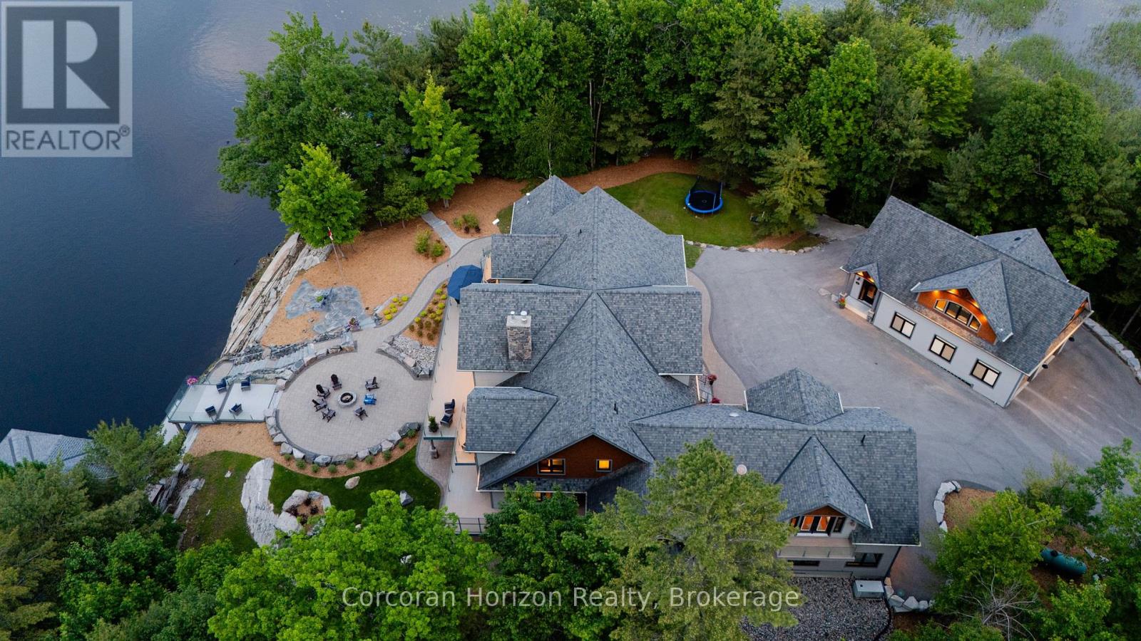 Welcome to the crown jewel of Ontario's world-renowned cottage country an exquisite combination of 10,000+ sq. ft. custom-built estate retreat perched on the exclusive southeast tip of Pilkington Island, one of only five estate lots with rare year-round road access and just 90 minutes from Toronto, minutes off Highway 400. This private peninsula offers over 550+ feet of pristine shoreline on Gloucester Pool, part of the historic Trent-Severn Waterway, featuring deep, clean water ideal for endless boating, swimming, and waterfront relaxation. A rare double-slip steel boat port, separate floating dock, and breathtaking panoramic views ensure every sunset is unforgettable. Inside, luxury abounds with a grand Great Room and floor-to-ceiling granite fireplace, a formal dining room for 16, a gourmet kitchen with professional appliances and walk-in pantry, a serene Muskoka Room, a main-floor Master and VIP suite, four upper-level bedroom suites with a loft and kids den, plus a walk-out lower level with two additional suites, granite fireplace, wet bar, games and exercise rooms. The estate also includes an oversized attached double garage, a detached garage with a nanny/in-law suite above, newly paved driveway, and fresh landscaping the ultimate blend of exclusivity, elegance, and the cottage lifestyle. (id:46441)