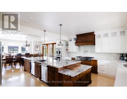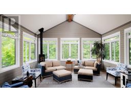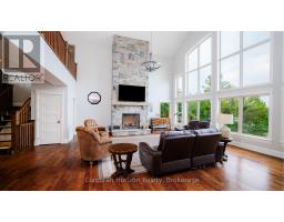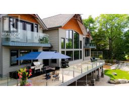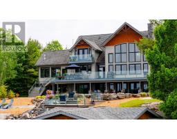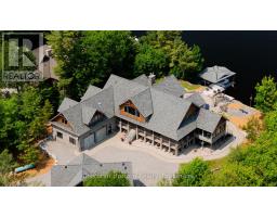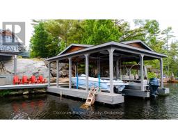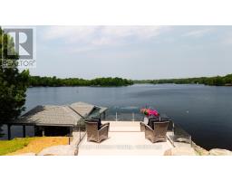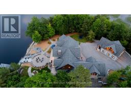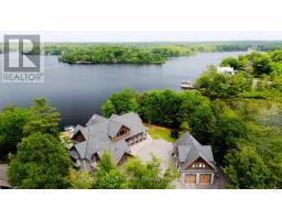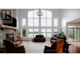 Welcome to the crown jewel of Ontario's world-renowned cottage country an exquisite combination of 10,000+ sq. ft. custom-built estate retreat perched on the exclusive southeast tip of Pilkington Island, one of only five estate lots with rare year-round road access and just 90 minutes from Toronto, minutes off Highway 400. This private peninsula offers over 550+ feet of pristine shoreline on Gloucester Pool, part of the historic Trent-Severn Waterway, featuring deep, clean water ideal for endless boating, swimming, and waterfront relaxation. A rare double-slip steel boat port, separate floating dock, and breathtaking panoramic views ensure every sunset is unforgettable. Inside, luxury abounds with a grand Great Room and floor-to-ceiling granite fireplace, a formal dining room for 16, a gourmet kitchen with professional appliances and walk-in pantry, a serene Muskoka Room, a main-floor Master and VIP suite, four upper-level bedroom suites with a loft and kids den, plus a walk-out lower level with two additional suites, granite fireplace, wet bar, games and exercise rooms. The estate also includes an oversized attached double garage, a detached garage with a nanny/in-law suite above, newly paved driveway, and fresh landscaping the ultimate blend of exclusivity, elegance, and the cottage lifestyle. (id:46441)