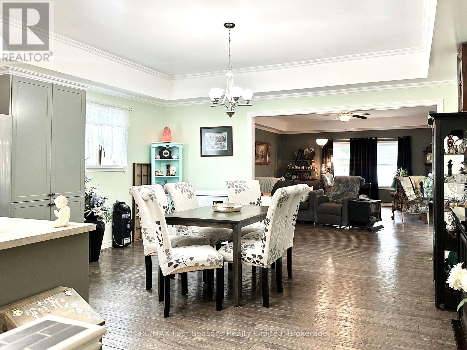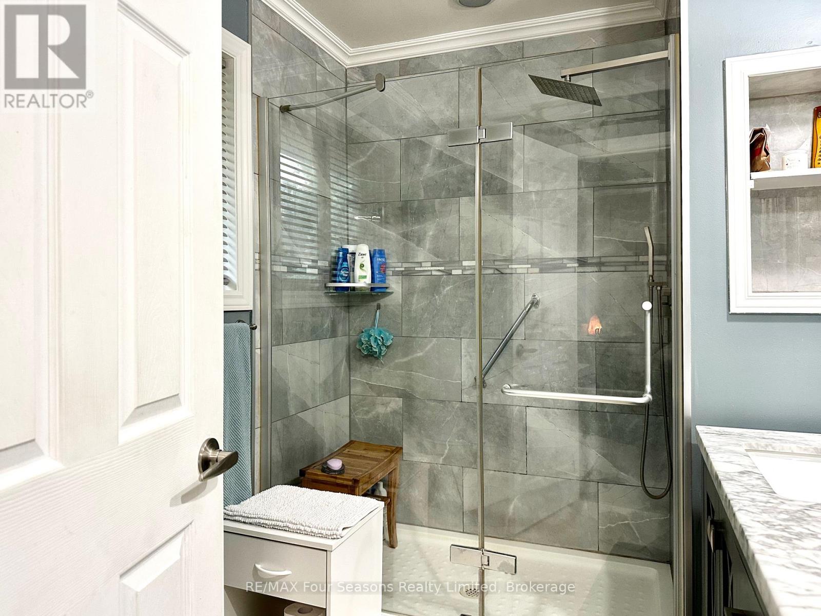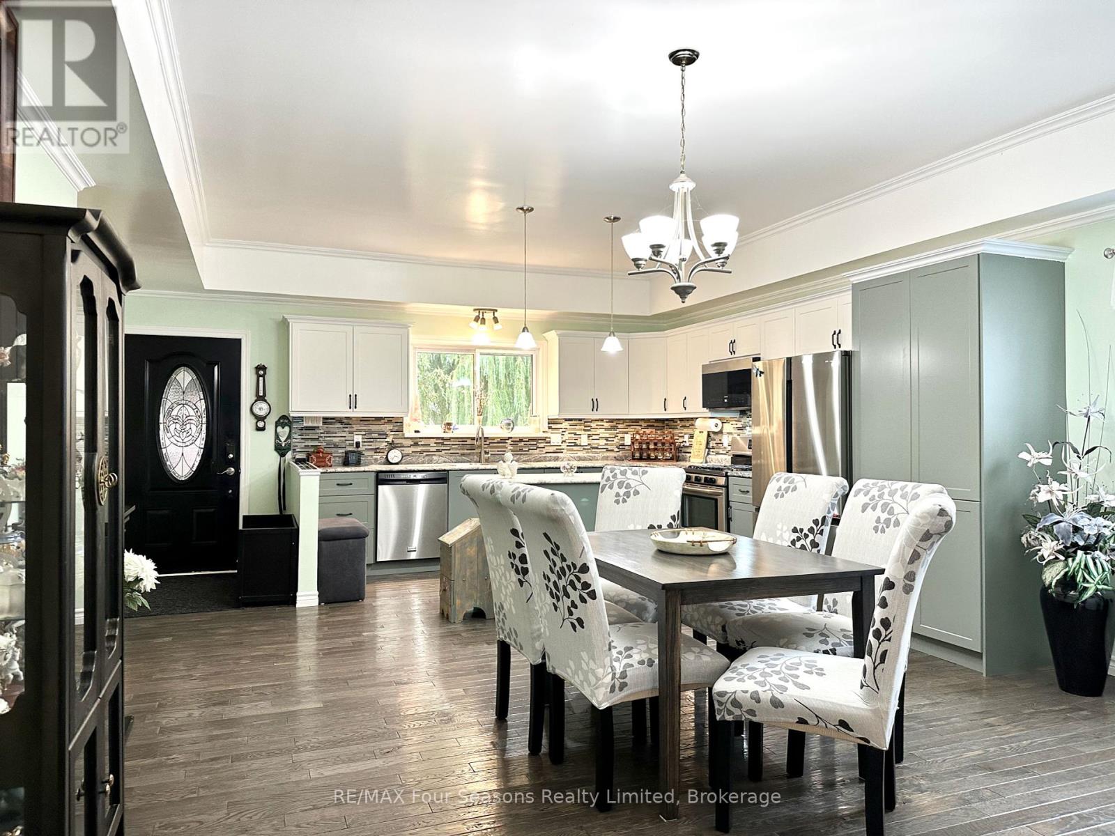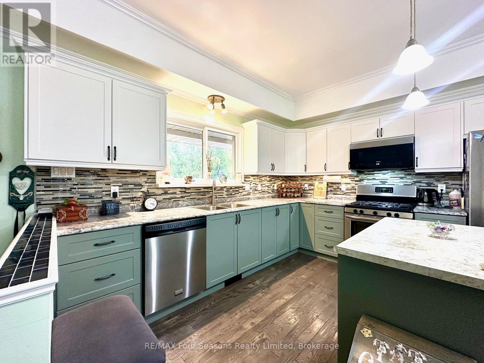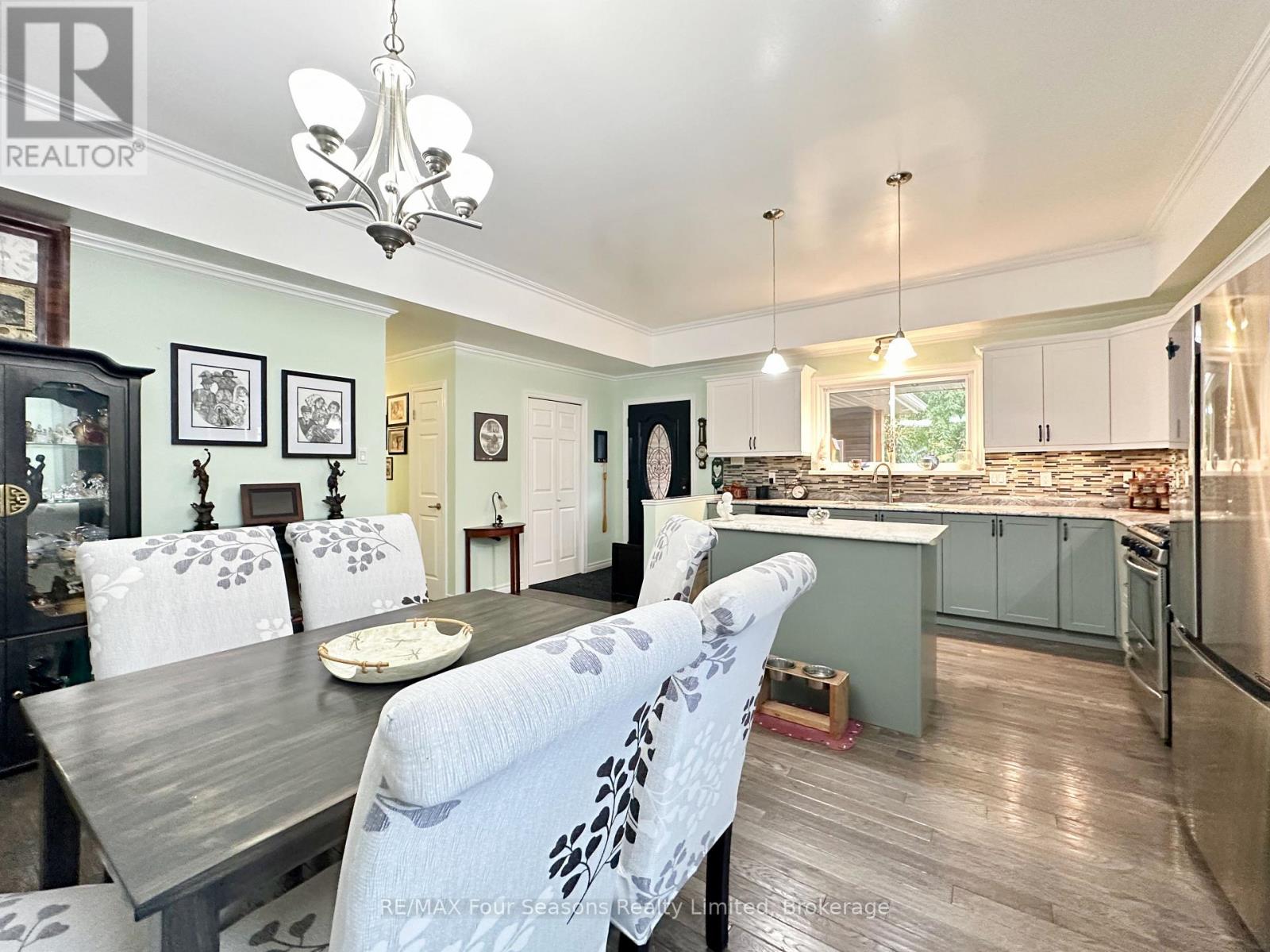 HUGE LOT - Welcome to this charming and fully updated 2-bedroom, 2-bath bungalow in the heart of Stayner. Set on an impressive 60 x 260 lot, this home offers modern comfort with plenty of space to enjoy inside and out. The open-concept design features a bright kitchen with a gas range that flows seamlessly into the dining and living areas. A spacious living room with custom built-ins, electric fireplace, and sliding doors leads to a large back deck with a covered gazebo area - perfect for outdoor dining and entertaining. The primary suite is complete with a walk-in closet and private ensuite, while a second bedroom and full bath provide flexibility for family or guests. Enjoy the covered front porch with ramp access, a 16 x 20 detached insulated garage with hydro, a paved driveway, and an additional storage shed. Move-in ready with numerous recent upgrades, this home is an excellent choice for first-time buyers, retirees, or anyone looking to downsize while still enjoying a generous lot and modern updates. Furnace (2023), Heat Pump (2022) (id:46441)