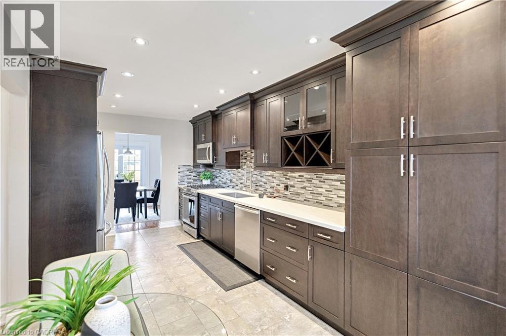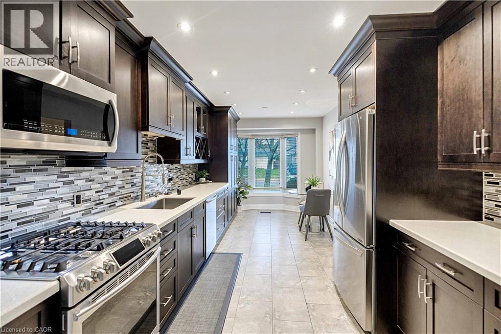 Well-maintained home in highly sought-after Brant Hills community, a neighbourhood known for its family-friendly atmosphere, mature trees and parks, schools, trails and unbeatable convenience. Bright and welcoming, the main floor offers a spacious and versatile living and dining area filled with natural light. The open layout creates an inviting space for everyday living and entertaining, with a seamless walkout to the private backyard The updated kitchen stands out with its rich dark, high-quality cabinetry, full pantry with pull-out drawers, generous counter space, and a practical eat-in area perfect for casual meals or morning coffee. Stainless steel appliances and modern finishes add both style and functionality. Main-floor laundry room, 2 piece powder room and direct access to the garage add everyday convenience. Upstairs, you’ll find three generous bedrooms, each offering bright natural and ample closet space. The primary bedroom features ensuite privilege to the updated 5-piece bathroom. The lower level provides opportunity to create the space your family needs, with space for a recreation room, home office, gym, or additional living area, along with plenty of storage. Step outside to a fully fenced backyard with easy to maintain landscaping and a newer deck, perfect for outdoor dining and entertaining. The oversized garage with additional storage and the double driveway add to the practicality of this wonderful home. Enjoy quick access to major highways, parks, shopping, community centres, and everyday amenities, all just minutes from your doorstep. (id:46441)