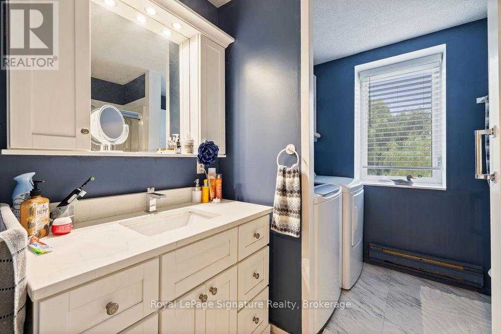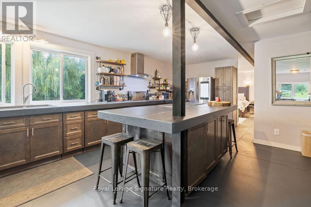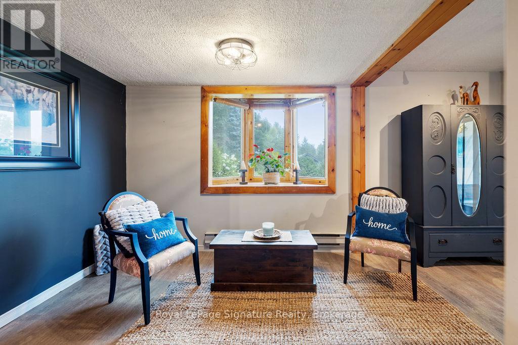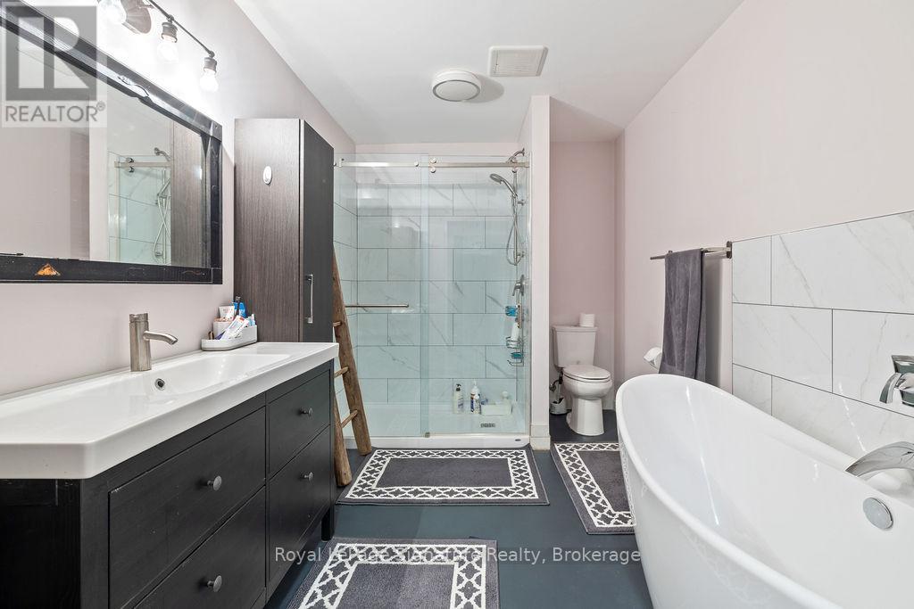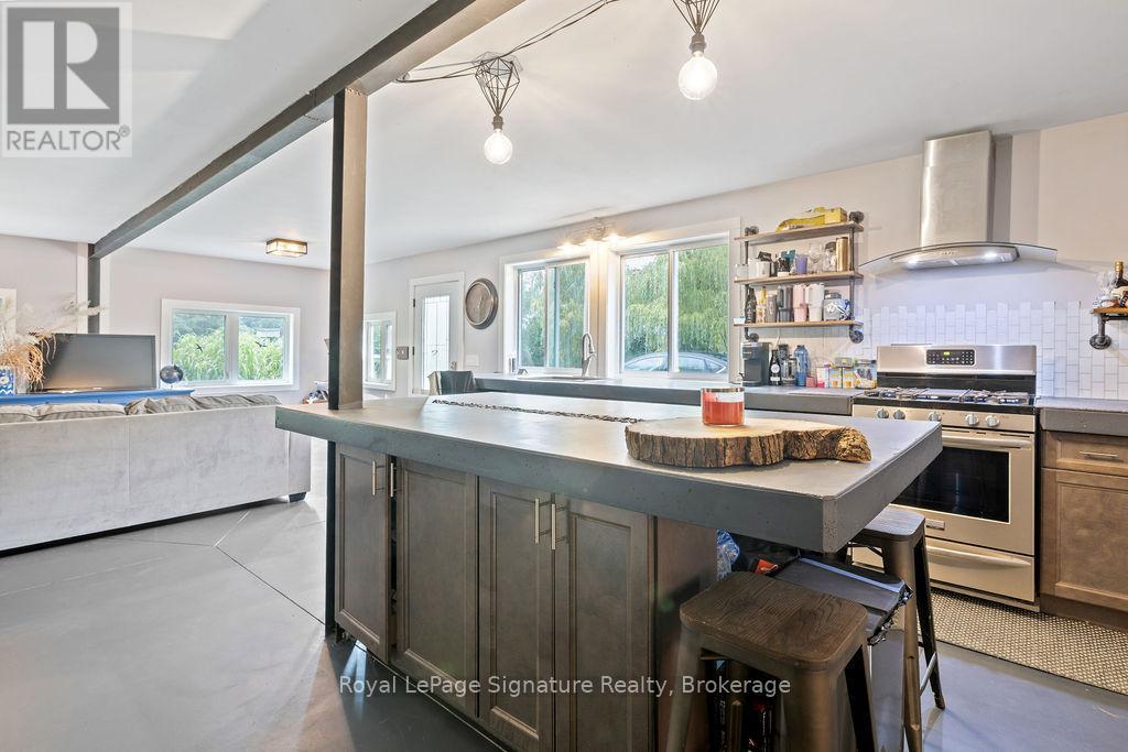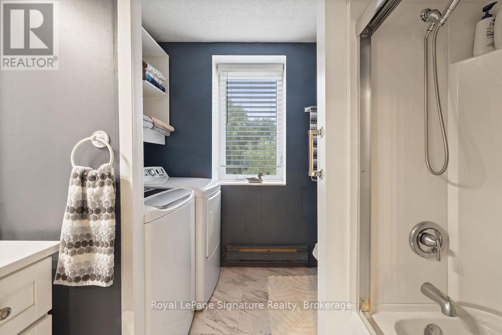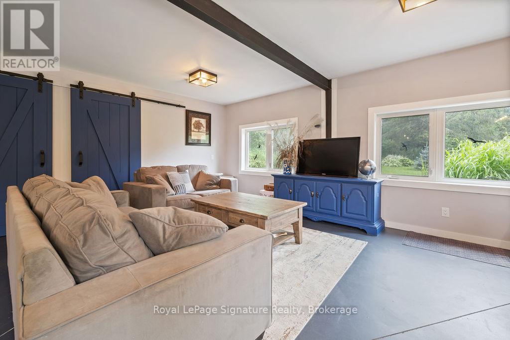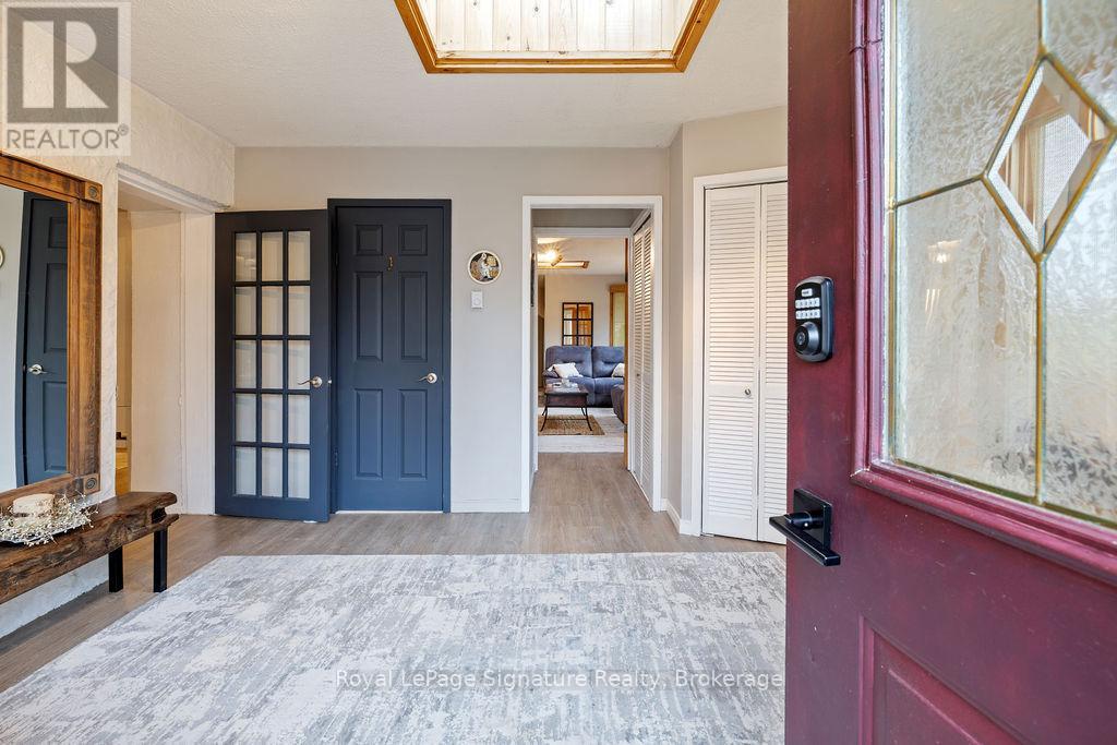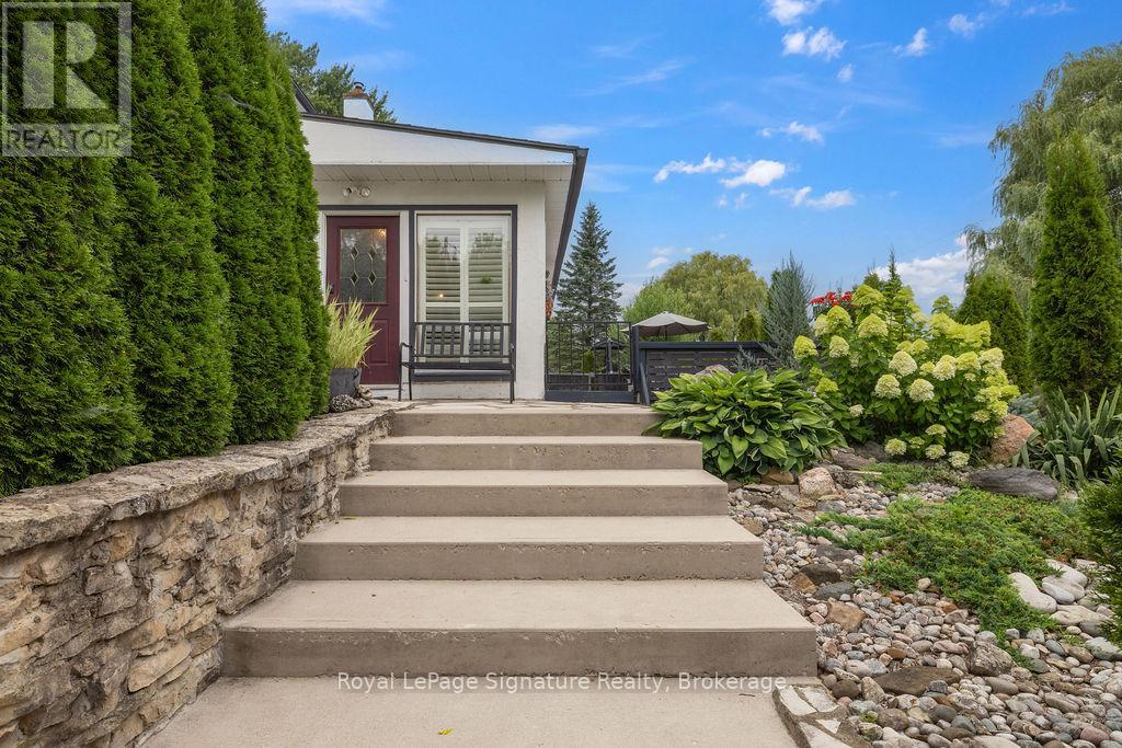Less than 500 metres from the shores of Georgian Bay with beach access close by, this property offers a rare opportunity for multifamily living, an in-law residence, rental income or a weekend retreat. Set in a quiet enclave, it features two fully self-contained homes on one lot. The main home is a two-storey residence with 2 bedrooms upstairs and a flexible main floor room that could serve as a third bedroom or a home office. A natural stone fireplace with a reclaimed barn beam mantle anchors the living space, and large windows bring in plenty of natural light. Recent updates include new main-floor laminate flooring. The kitchen and wet bar offer an ideal layout for cooking and gathering. Expansive wrap-around decking on the front and side of the home creates space for outdoor entertaining, and a private hot tub space provides a place to relax year-round. The second residence offers single-level, fully accessible living (AODA compliant) with approximately 1,200 square feet. Recently renovated, it features wall-to-wall radiant in-floor heating, an open-concept kitchen and living area with an 8' x 4' island, and stainless steel appliances and a washer & dryer. The primary suite includes a large walk-in closet and a spa-like ensuite with a large soaker tub and separate shower. The second bedroom also has its own ensuite for guest privacy. Enjoy a setting that feels like the country but is only a quick drive or bike ride to downtown Meaford. Swim, boat, or kayak in the summer, explore nearby trails in every season, and some of the best skiing Ontario has to offer, take advantage of the year-round recreation Grey County has to offer. (id:46441)
