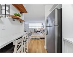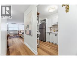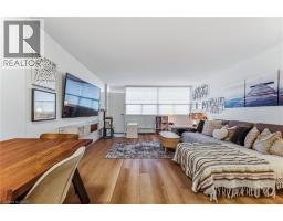 Enjoy peaceful, effortless living just steps to the lake in the highly sought-after Lighthouse community in the heart of Bronte. This beautifully renovated suite offers bright, comfortable living just a 3-minute walk to Lake Ontario, Bronte Marina, waterfront trails, cafés, restaurants and transit. Featuring modern plank flrs and ceramic flooring throughout, 3 custom 8 ft closets, a matching built-in desk and elegant window coverings including blackout treatments in the bedroom. Updated with a stainless steel stove (2025) and new toilet (2025). Includes a marbled stone floating console and 65” smart TV. Set in a safe, established neighbourhood, this well-managed building offers excellent amenities including outdoor pool, gym, saunas, party room, billiards, library and workshop. All-inclusive maintenance fees cover heat, hydro, water, Bell cable & internet, ideal for those looking to simplify without compromise. (id:46441)