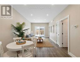 Stunning Southampton townhome, perfectly positioned along the scenic Saugeen River, just a short walk to vibrant downtown shops, restaurants, the beach & breathtaking sunsets on Lake Huron. Spanning over 2,000 sq ft of finished living space across three levels (two above grade plus a full finished basement), the home features a bedroom and full bathroom on each floor for ultimate convenience and privacy. Inside, you'll appreciate the tasteful finishes, including quality cabinetry, solid surface counters, luxury vinyl plank flooring, tiled bath/shower surrounds, LED lighting, and more. The main level showcases an open-concept living/dining area with access to your south facing deck, a U-shaped kitchen loaded with ample cabinetry and included appliances, a bright main-floor bedroom and a 4-piece bathroom. Upstairs, a versatile loft/sitting room leads to the primary bedroom suite, displaying river views through the dormer window, a 3-piece ensuite, and a large walk-in closet. The fully finished basement offers guest-friendly space with a third bedroom, another 4-piece bathroom, and a generous sized recreation room. Additional highlights include efficient natural gas furnace, central air conditioning, laundry hookups ready for your washer/dryer, concrete driveway, single attached garage, and low maintenance curb appeal with the stone-brick exterior. Built just a few years ago, this turn-key townhome is ready for you to move right in and add your decorative touch. Waterfront travelled road between. Photos with furniture and decor are virtually staged. (id:46441)