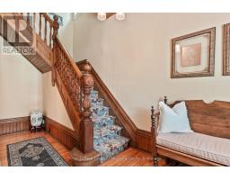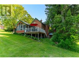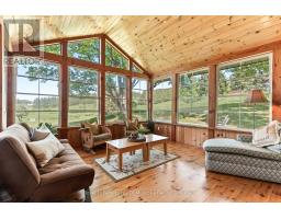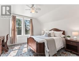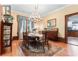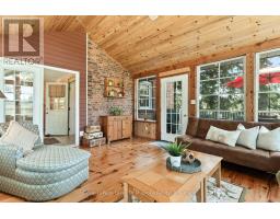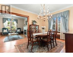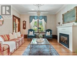 Set on a level 1.09-acre sprawling lot along Fraserburg Road, this distinguished century home blends architectural detail with modern updates. Built in 1890, the one-and-a-half-storey residence offers 2,000+ square feet of living space, an attached single garage with storage loft, and the convenience of municipal water and sewer services. A covered front porch leads into a gracious interior where original narrow plank hardwood flooring and detailed wood trim speak to the homes rich history. The elegant living room is anchored by a natural gas fireplace and flows seamlessly into a spacious formal dining room. The updated eat-in kitchen features warm wood cabinetry, modern appliances, built-in storage, and direct access to both a side-entry porch and a remarkable 16x16 screened Muskoka Room with vaulted ceiling and hardwood floors. French doors open to a large rear deck, creating a seamless connection between indoor and outdoor living. A stylish 4-piece bathroom with linen closet and modern vanity completes the main level. Upstairs, the carpeted second floor includes three well-appointed bedrooms and a bright sitting area. The private primary suite with original hardwood, accessed through a dedicated lounge or reading room, includes a secondary staircase leading to the kitchen below. Two additional bedrooms, each with closets, complete the upper level.The lower level features a walk-out to the rear yard, a recently renovated family room finished with ceramic tile, a modern 3-piece bathroom with built-in storage, and separate utility, storage, and laundry areas. The backyard is a picturesque retreat, with wide open lawn, mature trees, and elevated views that create a peaceful, park-like setting. This is a rare opportunity to own a stately and enduring residence that gracefully balances heritage character with contemporary comfort. All of this is just minutes from downtown Bracebridge, with easy access to schools, shopping, restaurants, and community amenities. (id:46441)