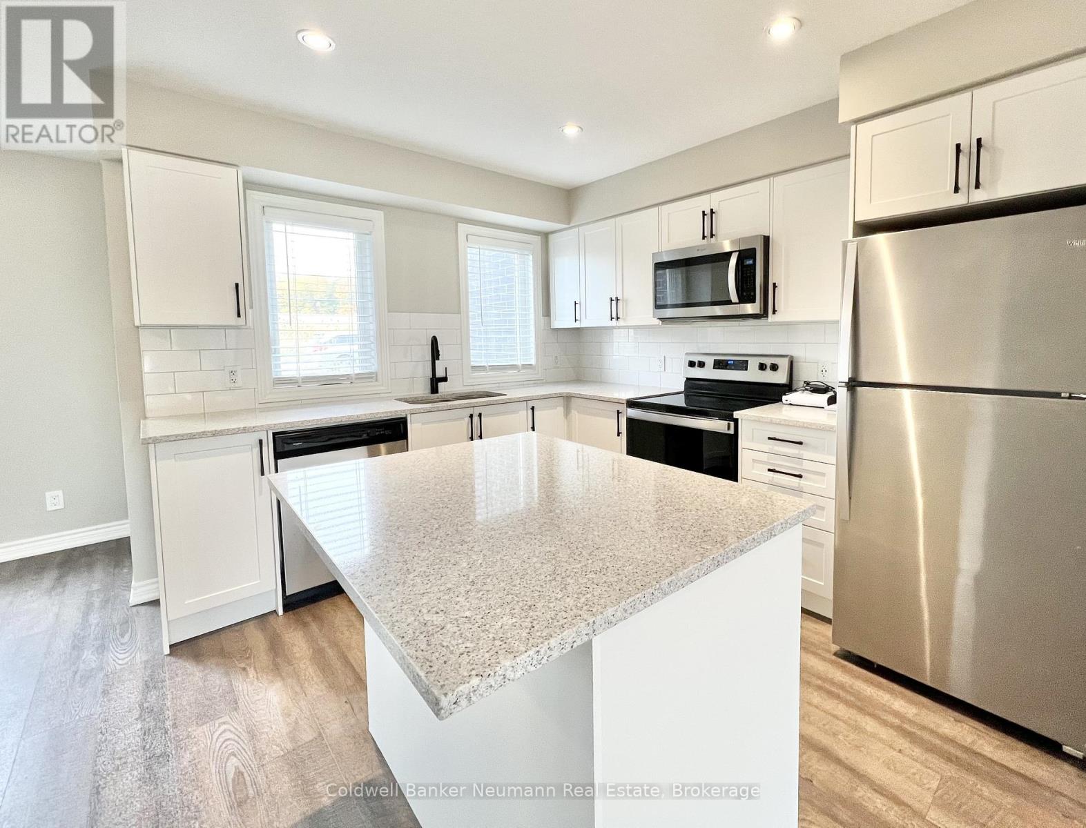 Welcome to 235 Chapel Hill Drive #23, a modern stacked townhome in the sought-after Doon South community. Built just 3 years ago, this stylish home features 3 spacious bedrooms, 2.5 upgraded bathrooms, and a thoughtfully designed open-concept layout.Enjoy a completely carpet-free interior across both levels, with sleek vinyl flooring throughout. The bright living room is enhanced with pot lights, while the chef-inspired kitchen offers quartz countertops, a large island, upgraded soft-close cabinetry, subway tile backsplash, and stainless steel appliances.Perfectly located just minutes from Highway 401, Conestoga College, schools, parks, scenic trails, shopping, transit, and everyday amenities with city bus service nearby for added convenience.Complete with one parking space, this home blends modern finishes with practical comfort ideal for todays lifestyle. (Bonus: the space feels even larger in person!) (id:46441)