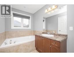 Set in the heart of desirable Summit Park, this stunning townhome delivers the perfect blend of style, space, and lifestyle with over 2,100 sq ft of finished living space, 3 bedrooms, 4 baths, and an attached garage. From the welcoming foyer and convenient main-floor powder room, step into a bright, open-concept layout designed for both everyday living and entertaining. The refreshed white kitchen features stainless steel appliances, subway tile backsplash, and a breakfast bar for casual meals and morning coffee. The expansive family room showcases rich hardwood flooring and a dramatic floor-to-ceiling stone gas fireplace-an inviting focal point for cozy evenings and gatherings-while the adjacent dining area opens through double doors to your private patio and garden. Upstairs, a versatile loft offers the ideal space for a home office, homework zone, or play area. The airy primary suite includes a walk-in closet and a spa-inspired ensuite with soaker tub and walk-in shower. Two additional generous bedrooms and a full bath complete the upper level. The finished lower level adds even more flexibility with a recreation room, powder room, and ample storage with laundry and utility space. Enjoy resort-style living within the complex, featuring a central boulevard with green space, gardens, and a covered gazebo. Direct trail access leads to Summit Park's soccer field, playground, basketball court, and walking trails-perfect for active families and outdoor enthusiasts. Located near top-rated schools including Shannen Koostachin Elementary, Our Lady of the Assumption, Saltfleet, and Bishop Ryan Catholic Secondary, and just minutes to shopping, dining, and everyday amenities. With quick access to the Red Hill Valley Parkway and Lincoln Alexander Expressway, commuting is effortless. This is the lifestyle upgrade you've been waiting for-move in, settle in, and start enjoying everything Summit Park has to offer. (id:46441)